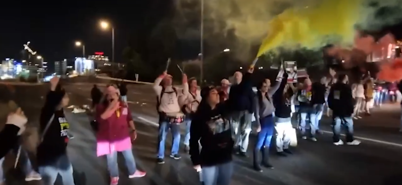 وأشارت صحيفة يديعوت أحرونوت العبرية، إلى أن عائلات المختطفين ومؤيديهم يغلقون طريق أيالون الرئيسي، بالقرب من جسر يتسحاق سديه ويشعلون النيران على الطريق.