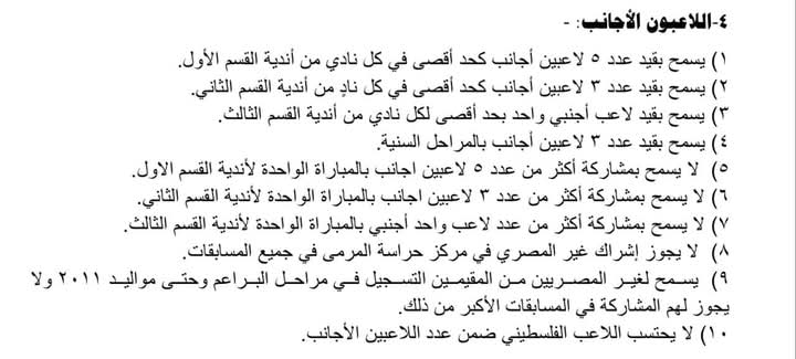 وتنص لوائح اتحاد الكرة والقيد والتعليمات المُرسلة إلى الأندية قبل انطلاق الموسم الحالي 2024-2025، على عدم مشاركة أكثر من 5 لاعبين أجانب في مباراة واحدة وهو ما تخطاه فريق مودرن سبورت بمشاركة 6 لاعبين أمام الإسماعيلي.
