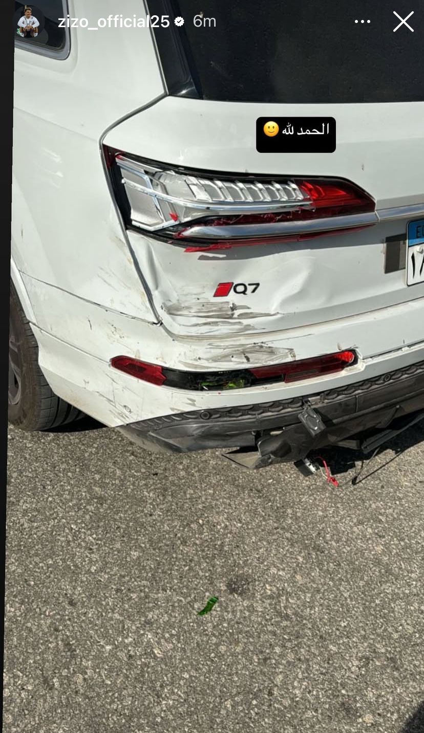 ونشر زيزو صورة سيارته بعد تعرضه لحادث، وذلك عبر خاصية استوري على حسابه الشخصي على انستجرام، وعلق عليها: الحمد لله.