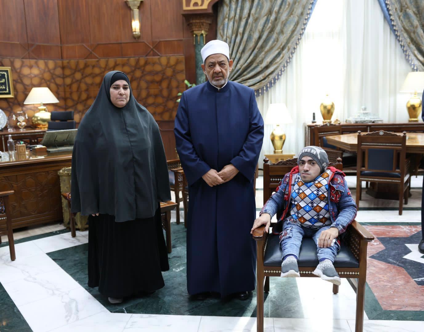 شيخ الأزهر يلتقي السيدة زينب الشربيني ويشيد بصبرها وتفانيها في خدمة ابنها