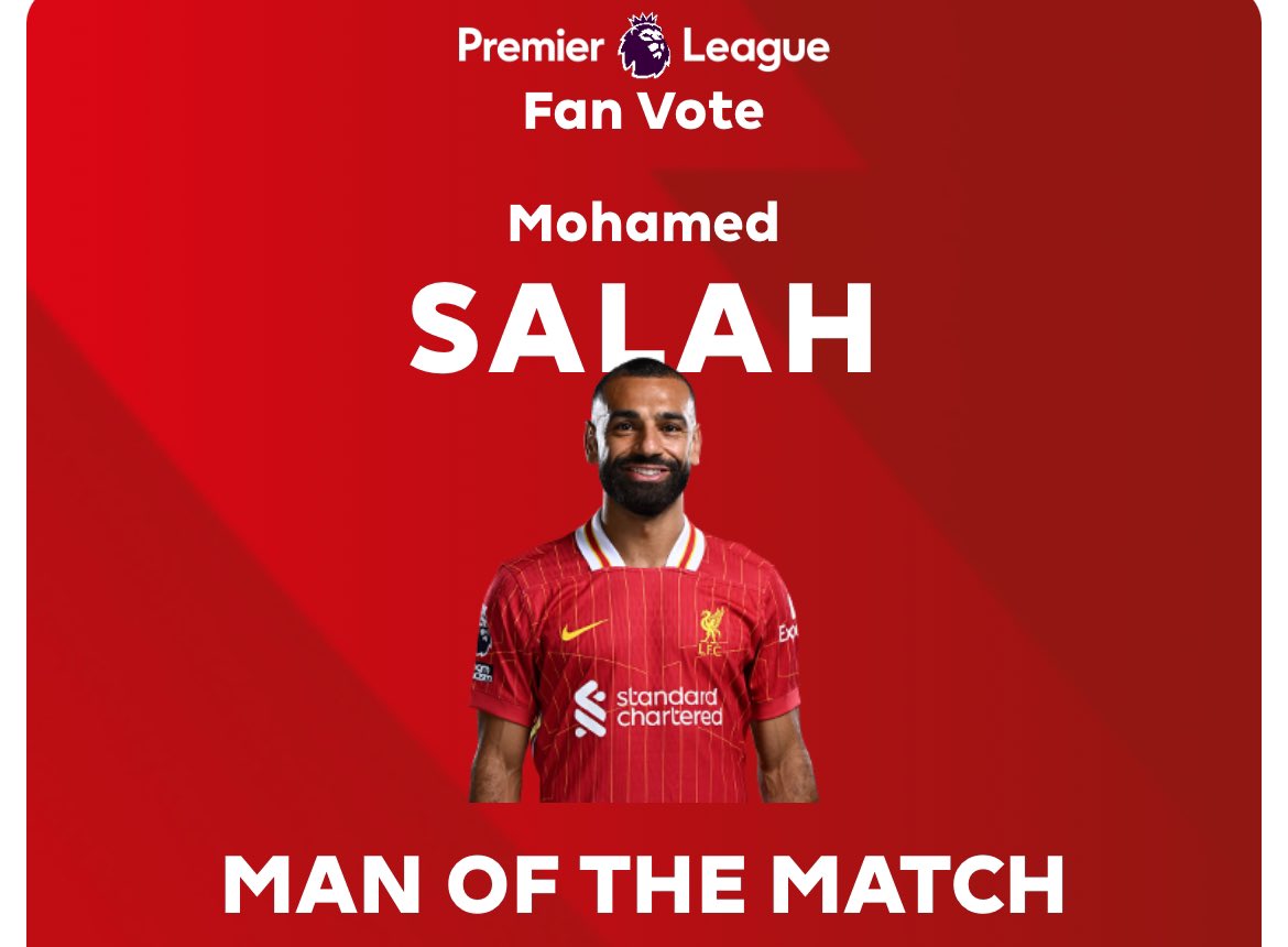وساهم محمد صلاح في تعادل ليفربول أمام فريق مانشستر يونايتد، حيث سجل هدف الريدز الثاني عن طريق ركلة جزاء، كما حصل صلاح على جائزة أفضل لاعب خلال المباراة.