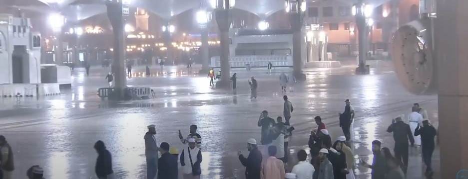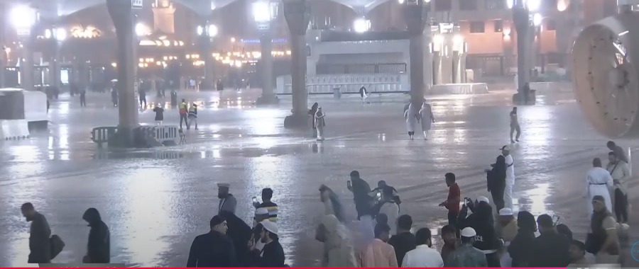 شهدت المدينة المنورة سقوط أمطار غزيرة على مختلف مناطقها، وكذلك المسجد النبوي الشريف خلال الساعات الماضية.