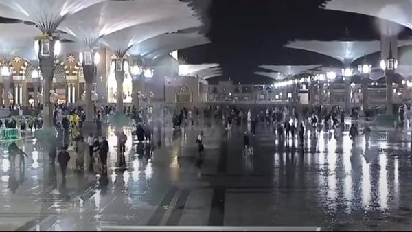 أمطار غزيرة على "المسجد النبوي الشريف" بالمدينة المنورة | صور