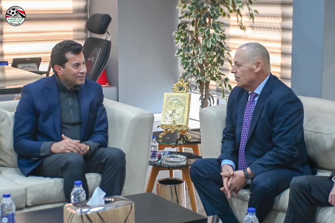 وبحث الوزير مع المهندس هاني أبوريدة خطط التطوير المستقبلي للاتحاد، ودعم اللاعبين المصريين في المحافل الدولية، في إطار استراتيجية الوزارة لدعم اللعبة الشعبية الأولى، والارتقاء بمستوى الأداء وزيادة عدد اللاعبين المحترفين خارج مصر.