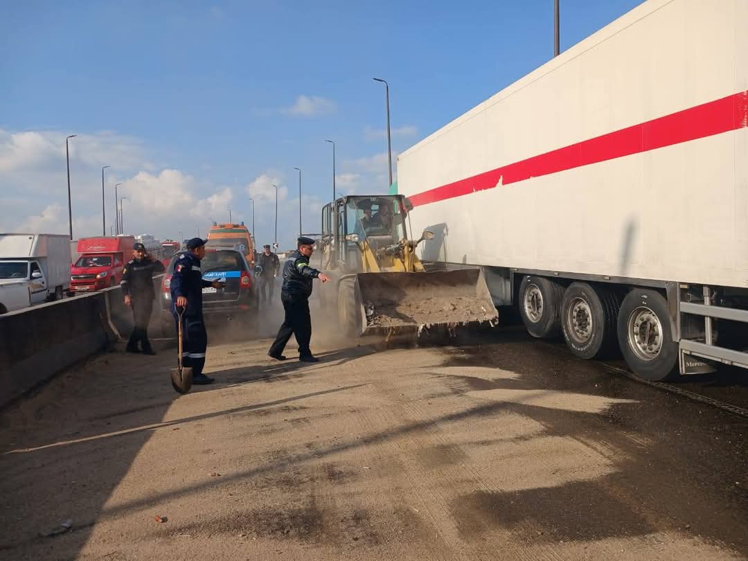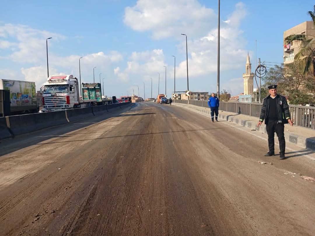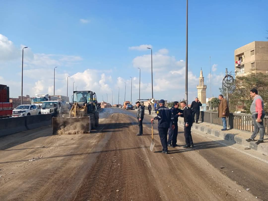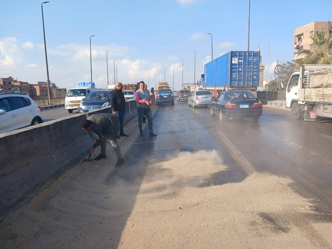 التعامل مع سقوط حمولة زيت على كوبري قويسنا بالمنوفية