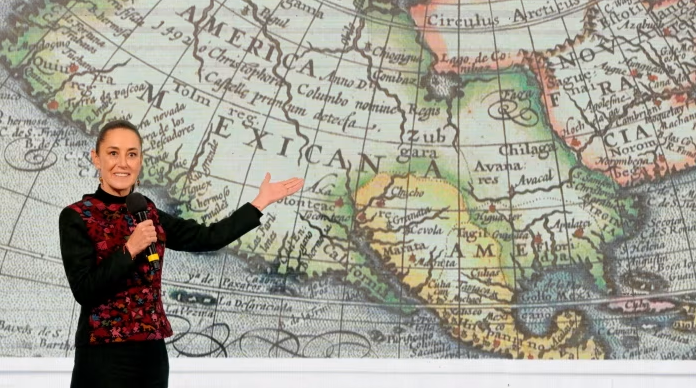 اقترحت رئيسة المكسيك كلوديا شينباوم، اليوم الأربعاء، إعادة تسمية أمريكا الشمالية بما في ذلك الولايات المتحدة إلى أمريكا المكسيكية، وهو اسم تاريخي استخدم على خريطة مبكرة للمنطقة، ردًا على تعهد الرئيس الأمريكي المنتخب دونالد ترامب بإعادة تسمية خليج المكسيك إلى خليج أمريكا.