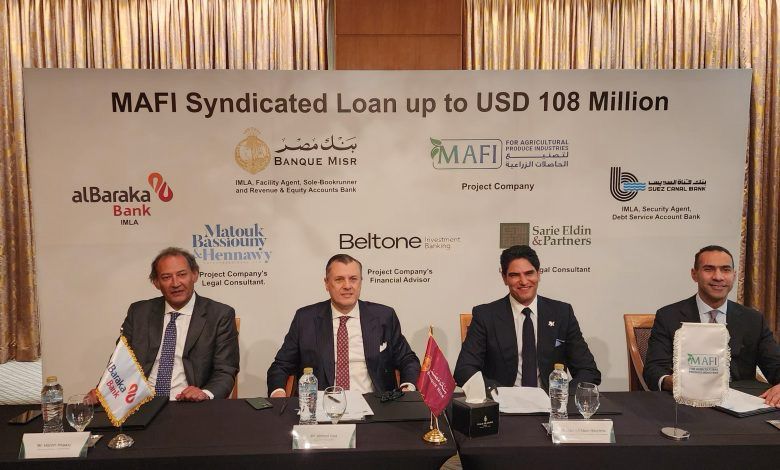 نجح تحالف مصرفي بقيادة بنك مصر مع بنك قناة السويس وبنك البركة-مصر في منح تمويل مشترك طويلالأجل بمبلغ 108 ملايين دولار لصالح شركة إم إيه أف أي لتصنيع الحاصلات الزراعية MAFI، بغرض تمويل جزء من التكاليف الاستثمارية الخاصة بالمشروع الممول والبالغة في حدود 180 مليون دولار.