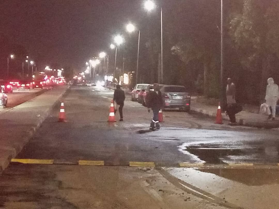 هبوط أرضي نتيجة كسر في خط مياه رئيسي بالغردقة | صور