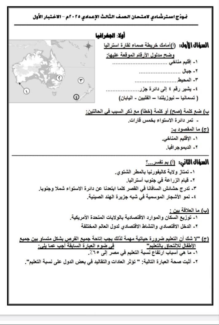 أعلنت مديرية التربية والتعليم والتعليم بمحافظة الجيزة، عن نماذج استرشادية شاملة لطلاب الشهادة الإعدادية في جميع المواد الدراسية.