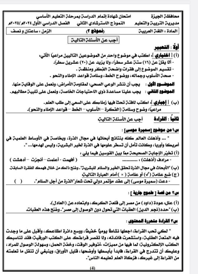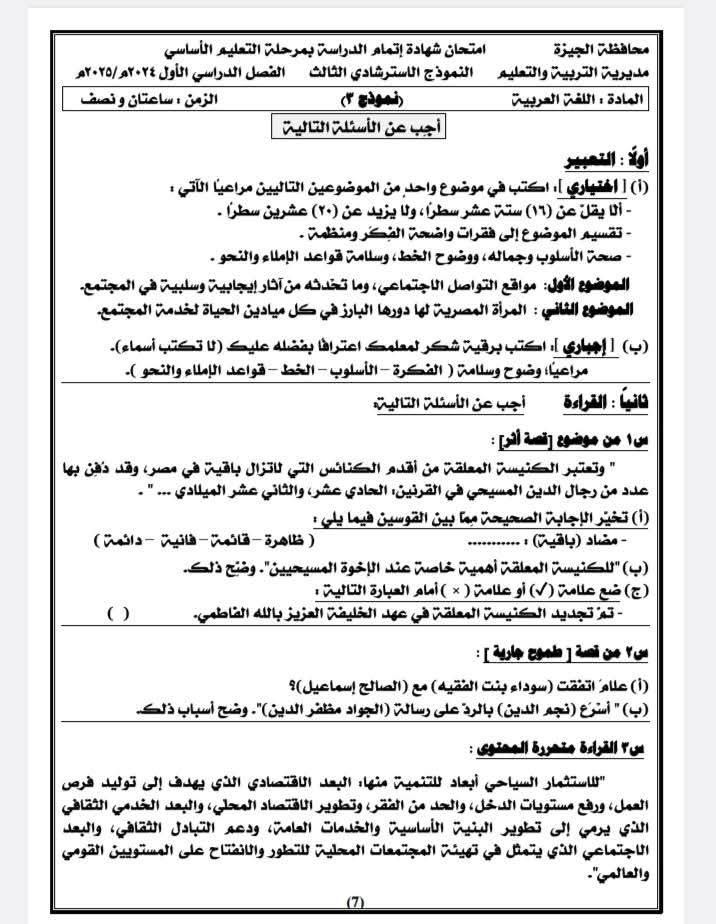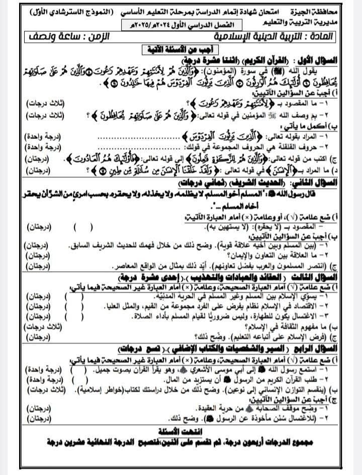 تعليم الجيزة تعلن عن نماذج استرشادية لطلاب الشهادة الإعدادية| صور