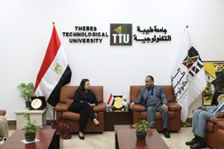 وفد الجامعة الأمريكية يبحث إنشاء مركز للتطوير المهني بجامعة طيبة التكنولوجية بالأقصر