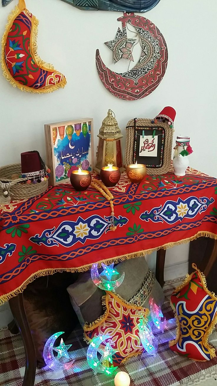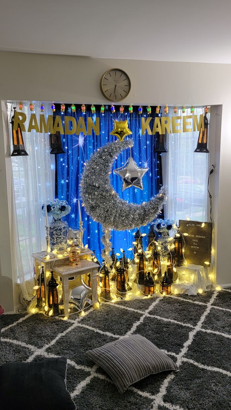 - تعليق زينة رمضان بالقصاصات الملونة أو عبارات رمضان كريم على حائط غرفة الجلوس.