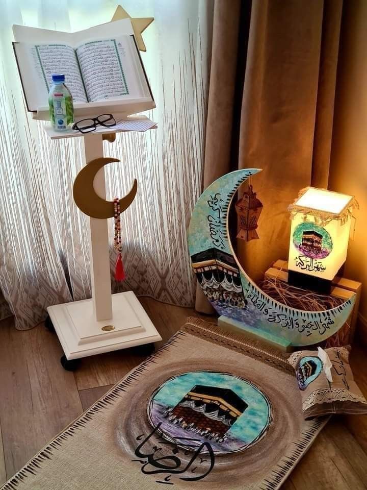 - تخصيص مكان للصلاة داخل المنزل ووضع مصطف كبير بحامل، ووضع سبحة وتجهيز المكان لصلاة التهجد في رمضان.