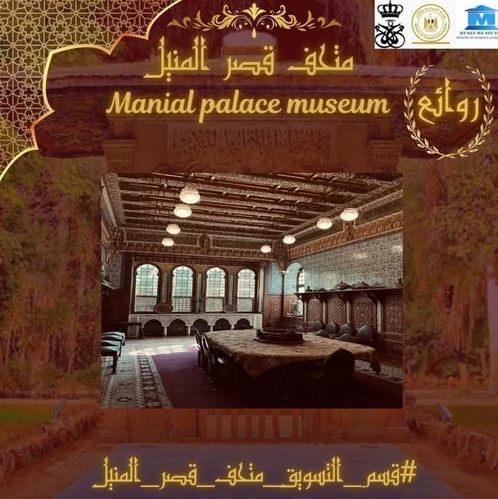 ألقت إدارة متحف قصر المنيل، الضوء على حجرة الطعام بالقصر، التي تقع في الجهة الجنوبية من بهو النافورة بالطابق الأول بسراي الإقامة.