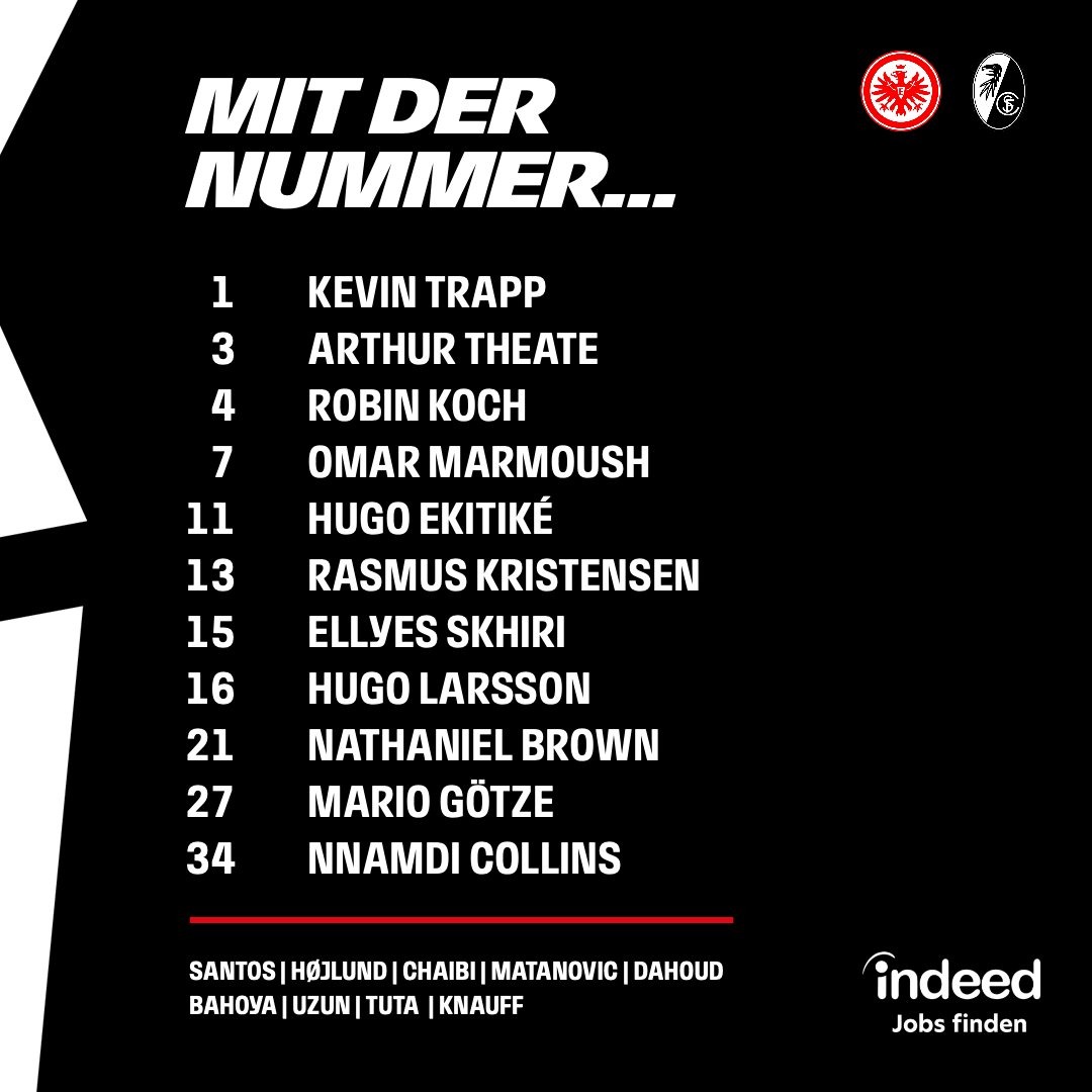 وجاء تشكيل آينتراخت فرانكفوت الرسمي لموجهة نظيره فريق فرايبورج في مسابقة الدوري الألماني، على النحو التالي: