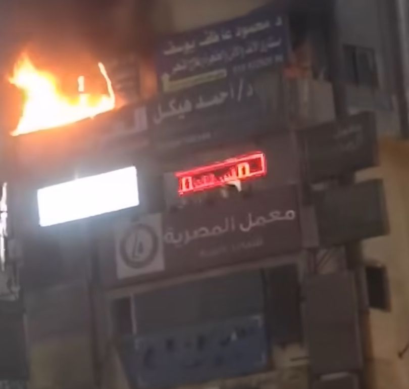 نشوب حريق في عيادة أعلى كشري زمزم بمحطة الطوابق بفيصل