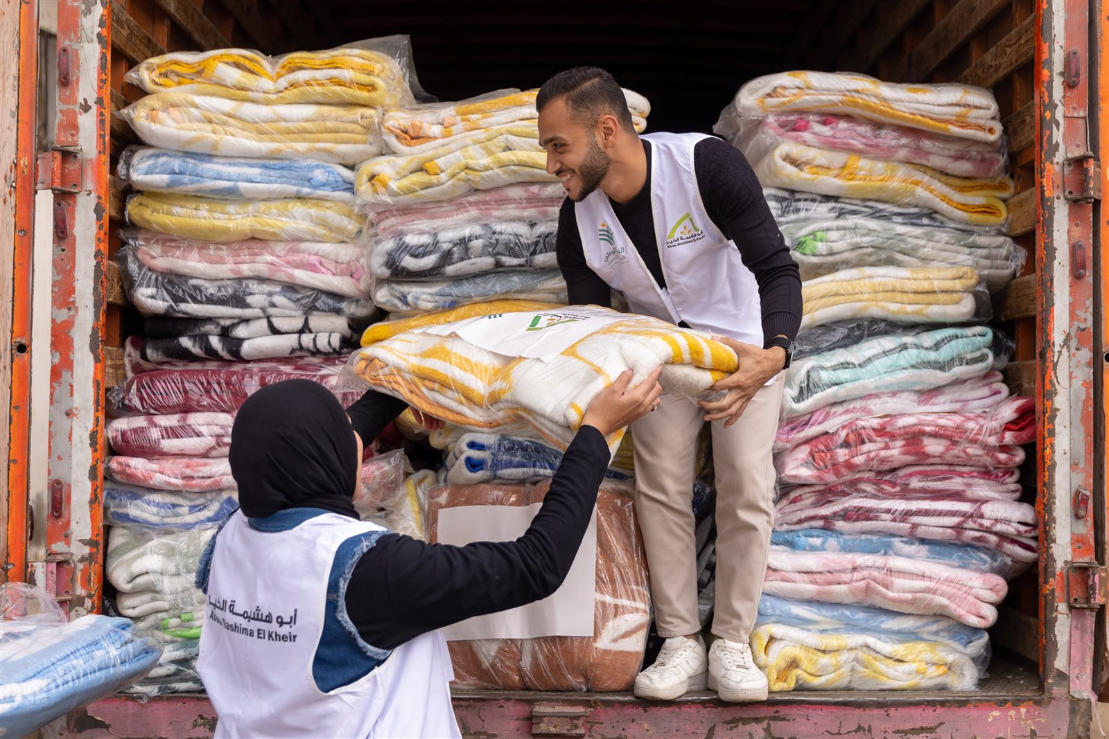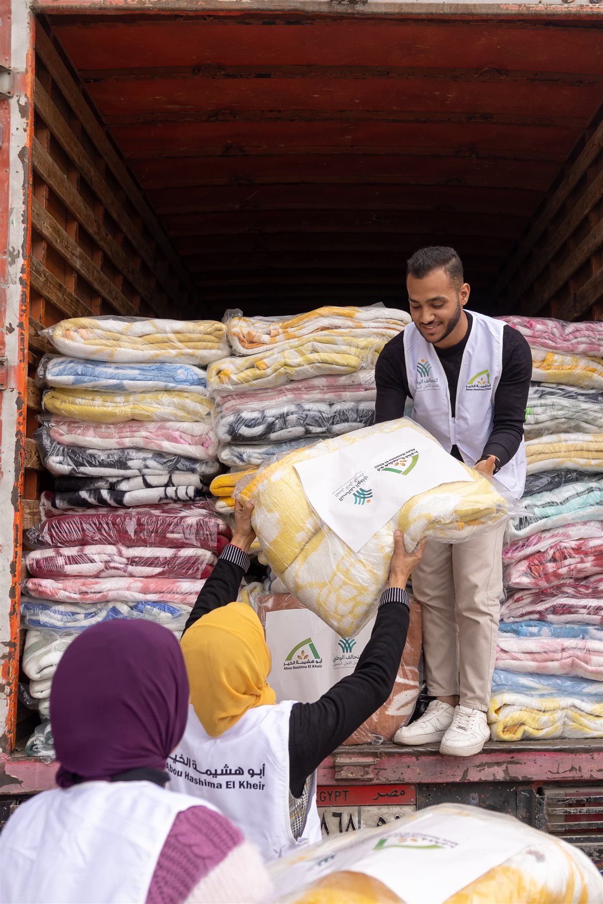 أبو هشيمة الخير توزع آلاف البطاطين على الأسر الأولى بالرعاية