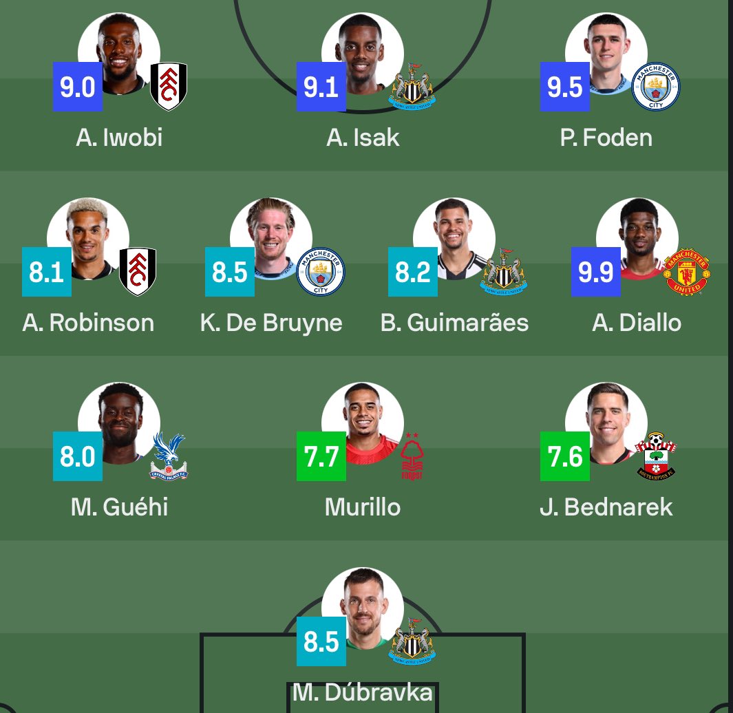 خط الهجوم: فيل فودين (مانشستر سيتي) - ألكسندر إيزاك (نيوكاسل يونايتد) - إيوبي (فولهام).