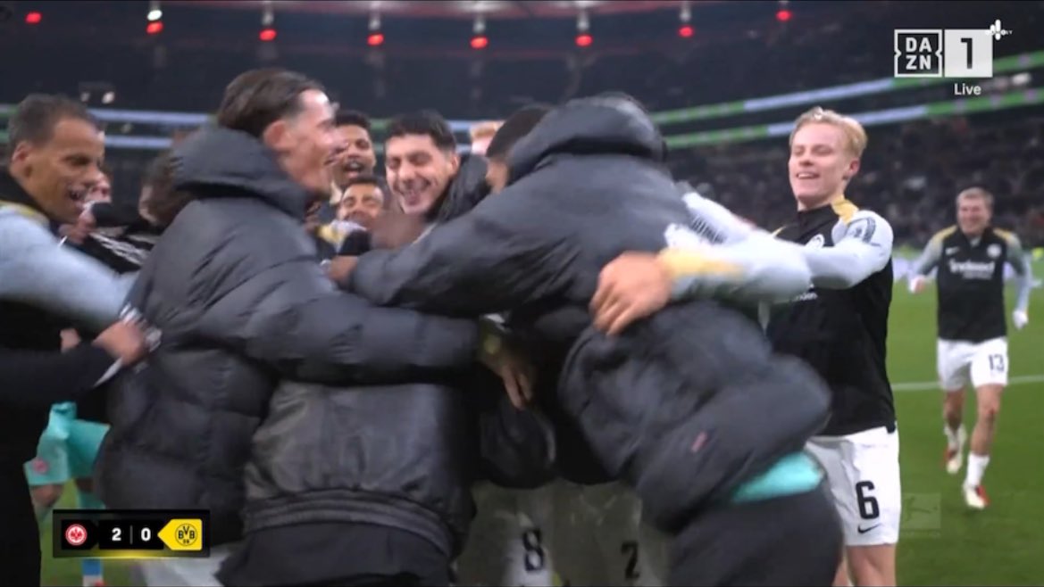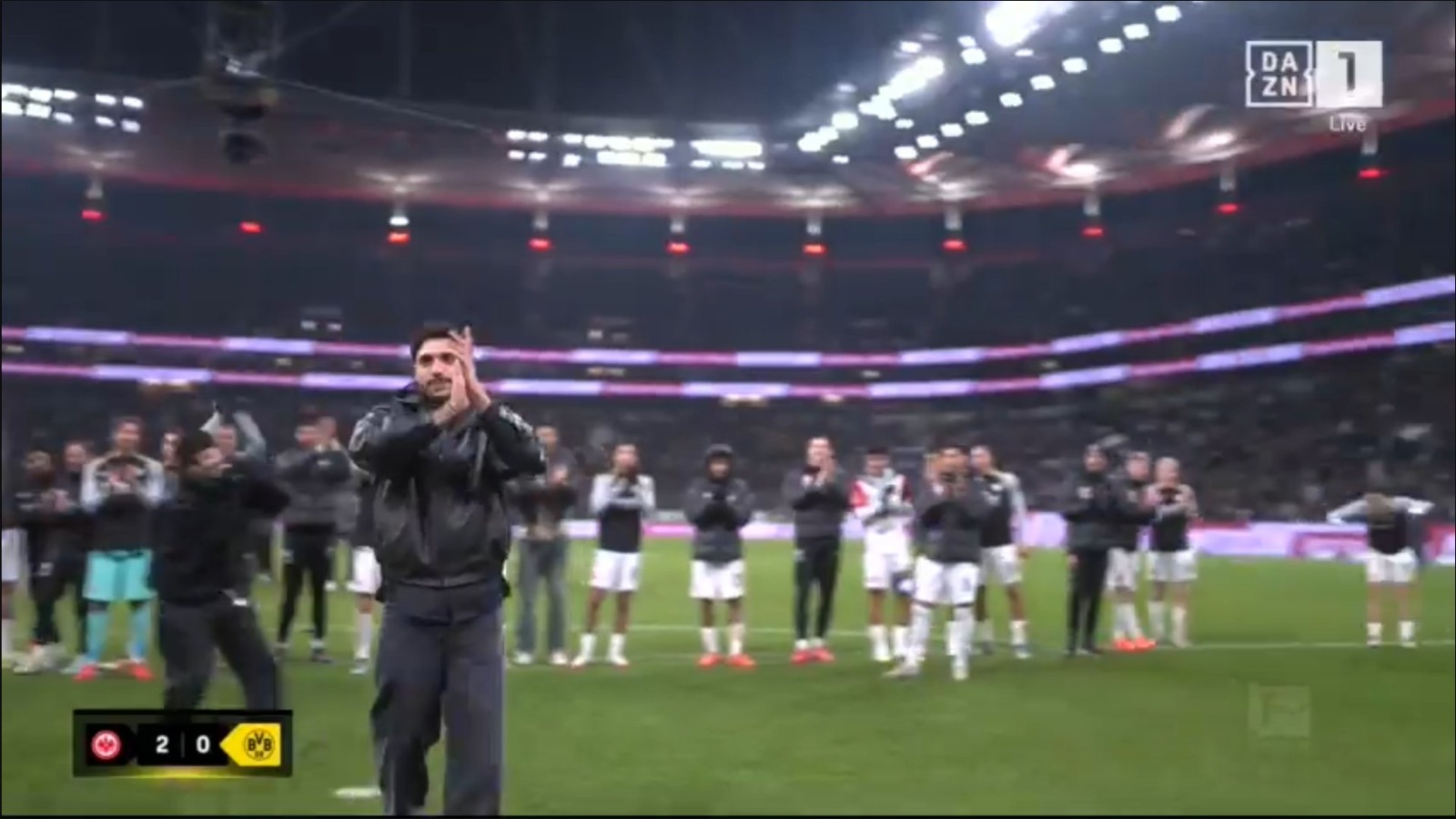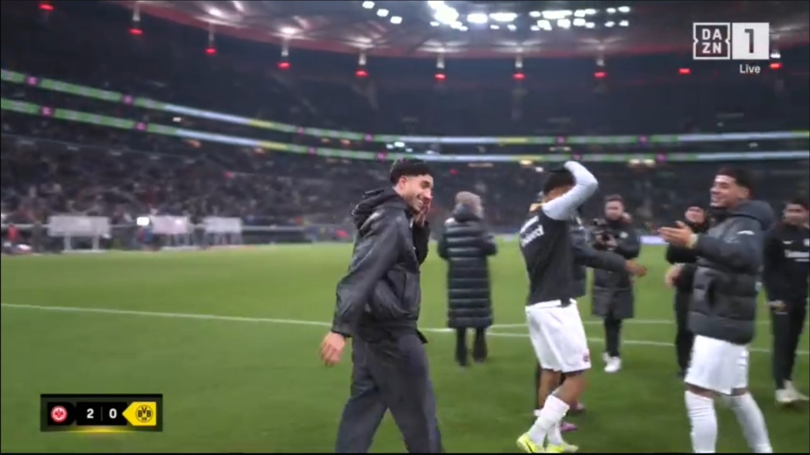 وخلال غناء الجمهور له، بكى عمر مرموش والتف زملاءه حوله من أجل توديعه قبل رحيله بشكل رسمي عن آينتراخت فرانكفورت إلى مانشستر سيتي.
