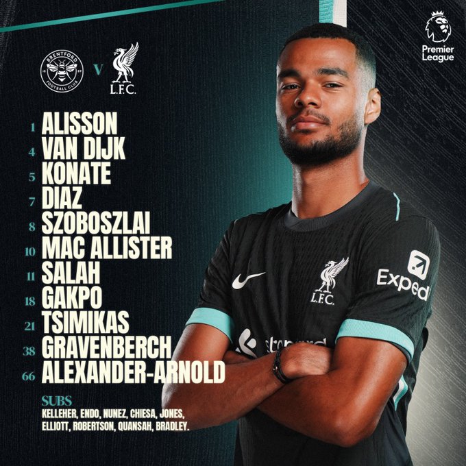 أعلن آرني سلوت المدير الفني للفريق الأول لكرة القدم بنادي ليفربول تشكيل لاعبيه، لمواجهة برينتفورد في المباراة المقرر انطلاقها الخامسة مساء، ضمن منافسات الدوري الإنجليزي الممتاز.