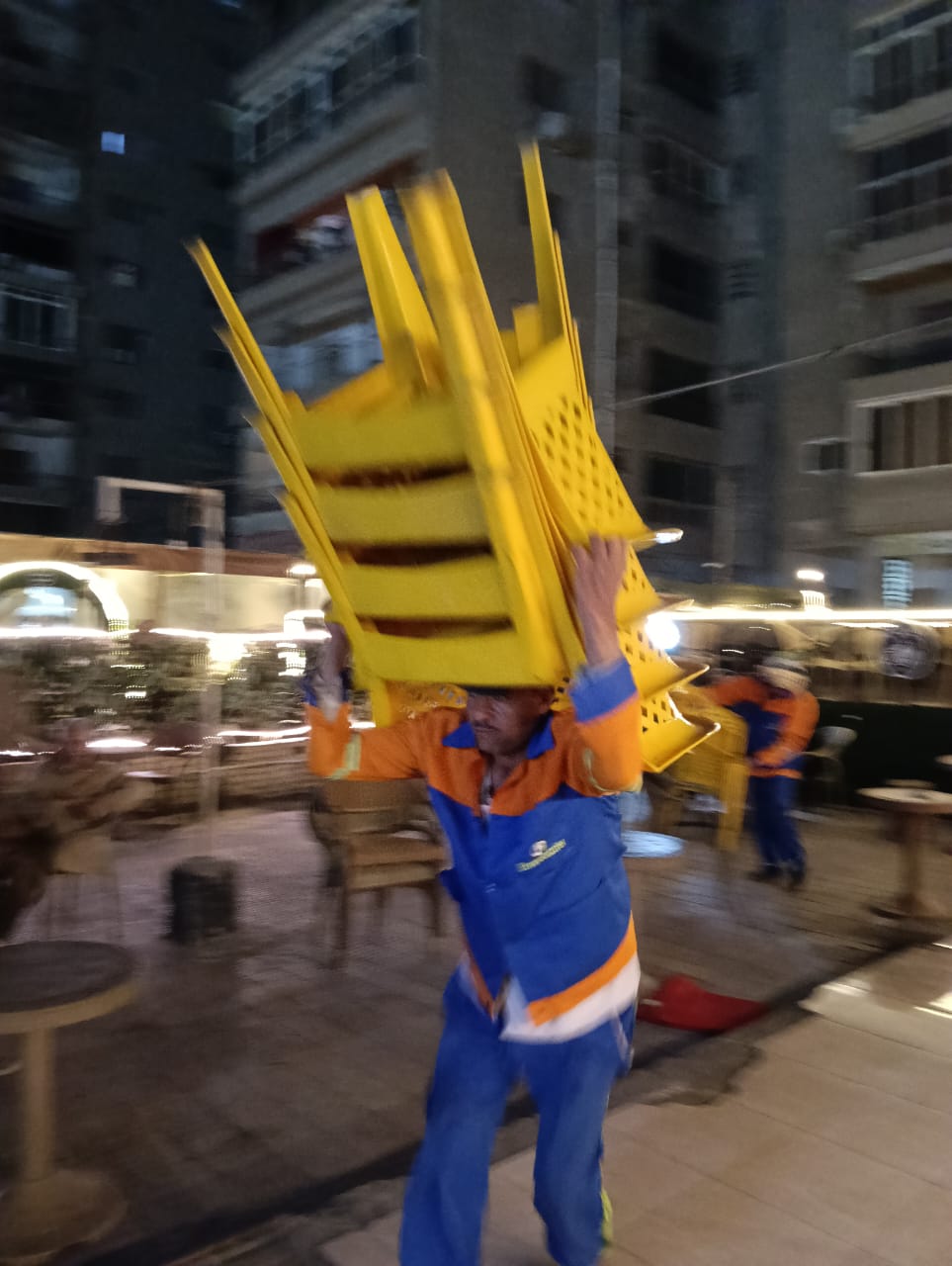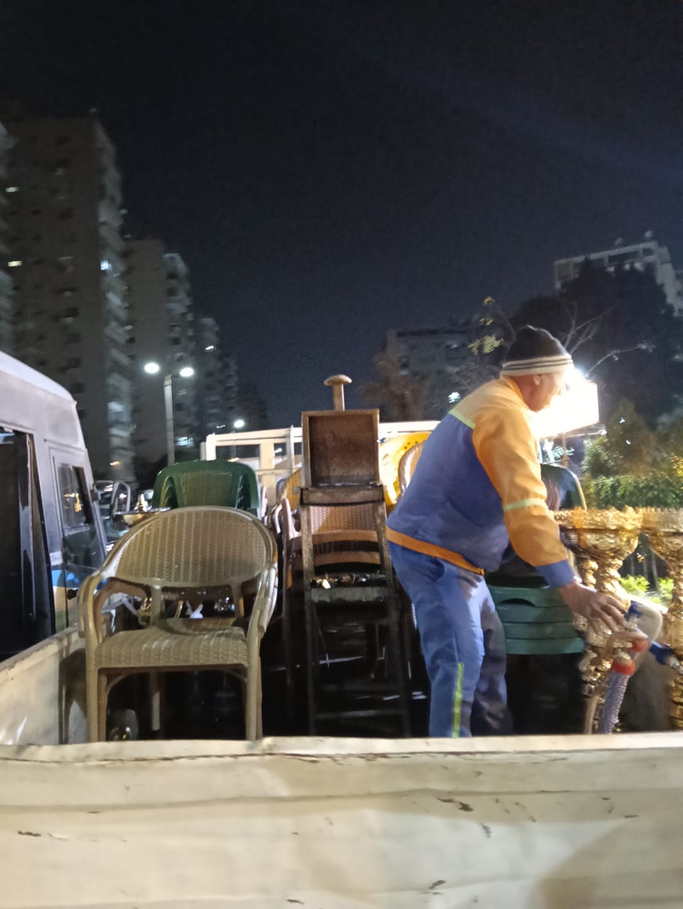 وتابع رئيس الحي، أنه جرى رفع كافة الكراسي والشيش وجميع المحتويات التي تسببت في غلق الشارع وإزعاج السكان بعمارات الشرق للتأمين.