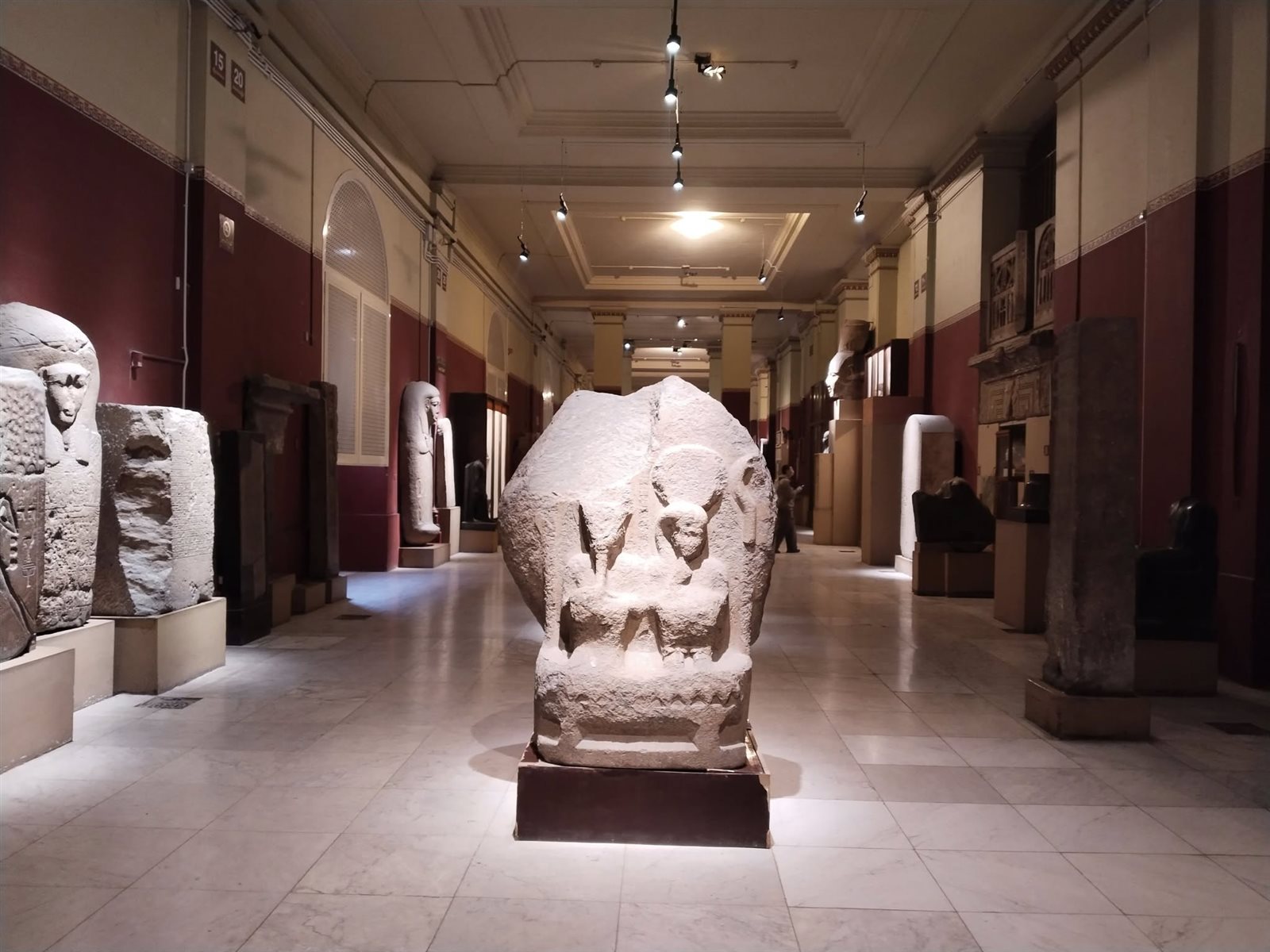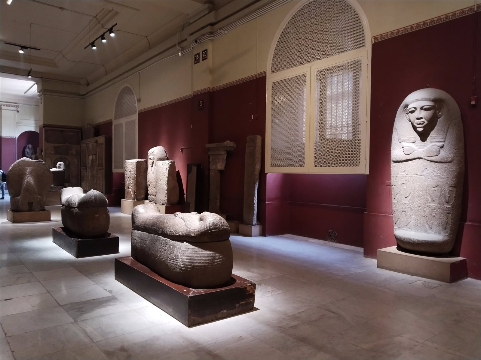 نشرت إدارة المتحف المصري بالتحرير، صورا لـ قاعات المتحف المصري بالتحرير معلقة عليها: جانب من تطوير الإضاءة المتحفية للقطع الأثرية المعروضة بالقاعات والأروقة الشرقية بالدور الأرضي بالمتحف.