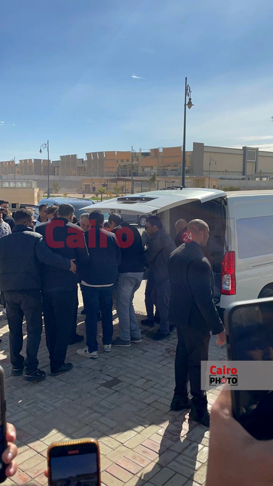 عمرو محمود ياسين يحمل نعش والد ياسمين عبد العزيز رفقة شقيقها لأداء صلاة الجنازة عليه