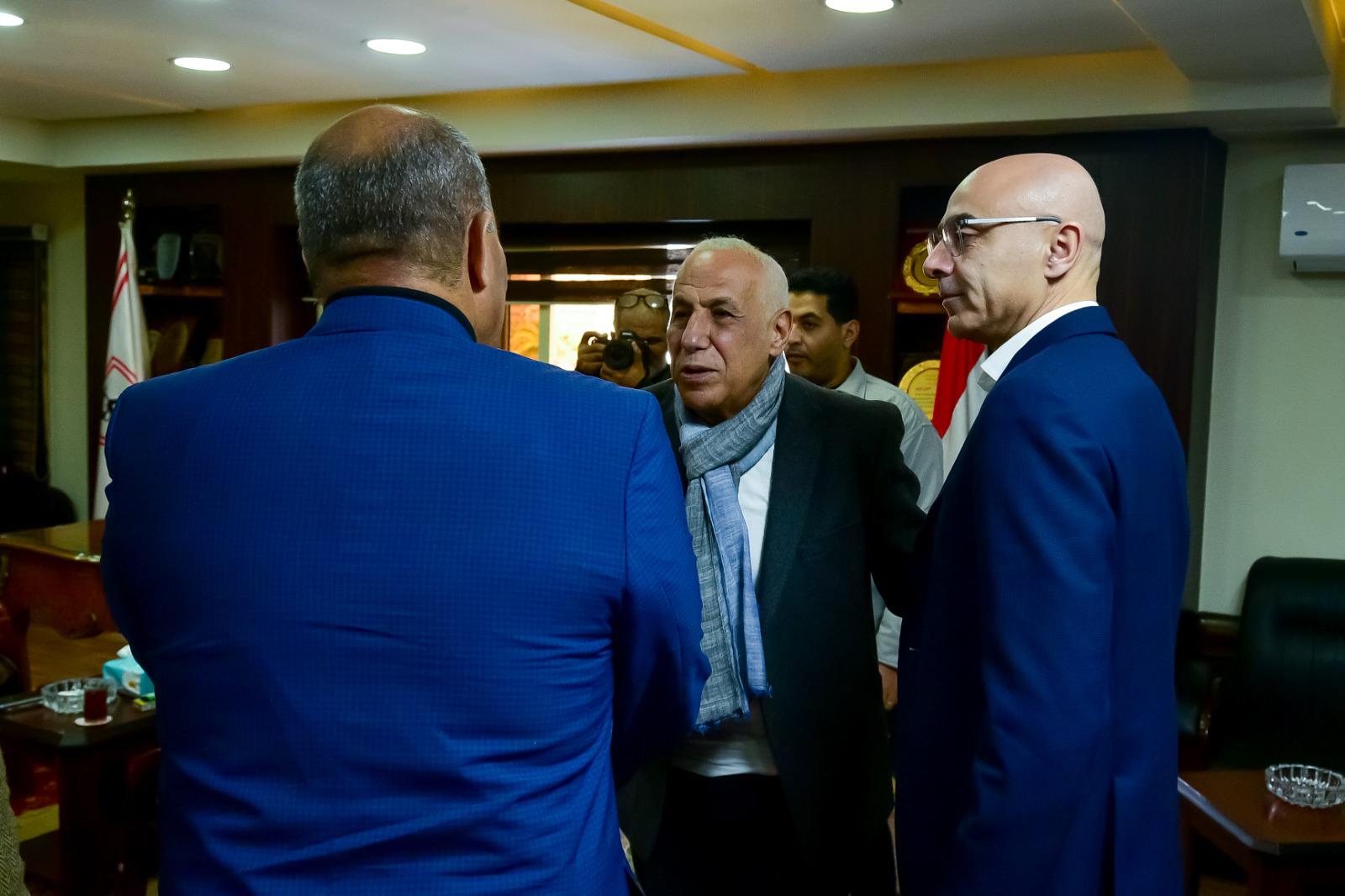 وكان في استقبال وفد مجلس إدارة اتحاد الكرة، الكابتن حسين لبيب رئيس مجلس إدارة نادي الزمالك، هشام نصر نائب الرئيس، حسام المندوه أمين الصندوق، أحمد سليمان، حسين السيد، هاني شكري ونيرة الأحمر أعضاء مجلس الإدارة.