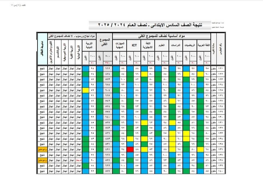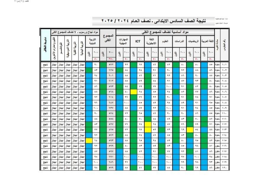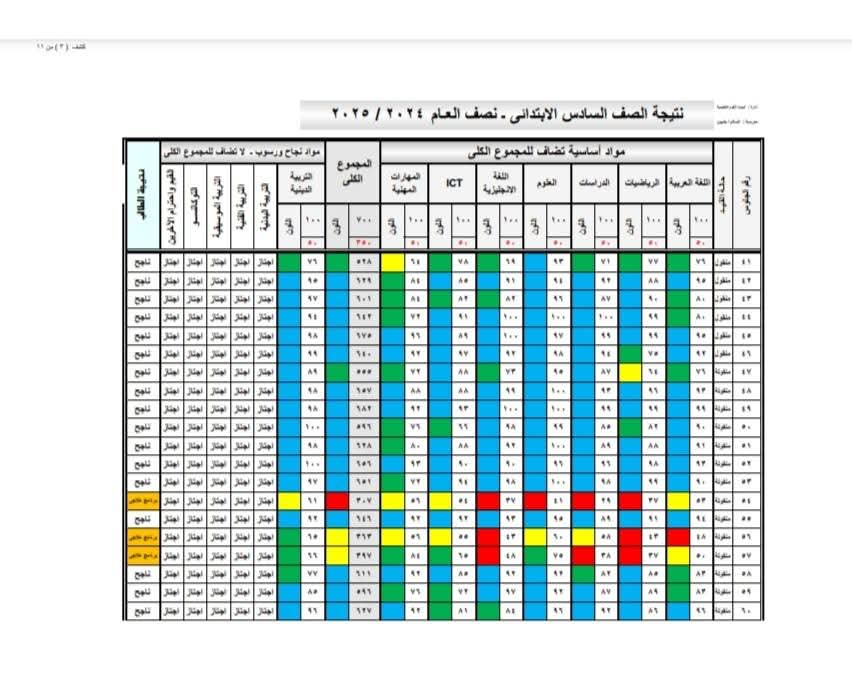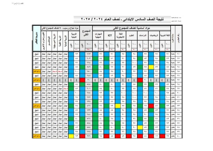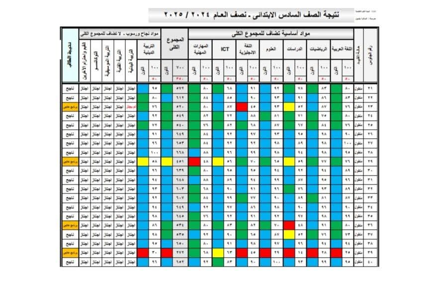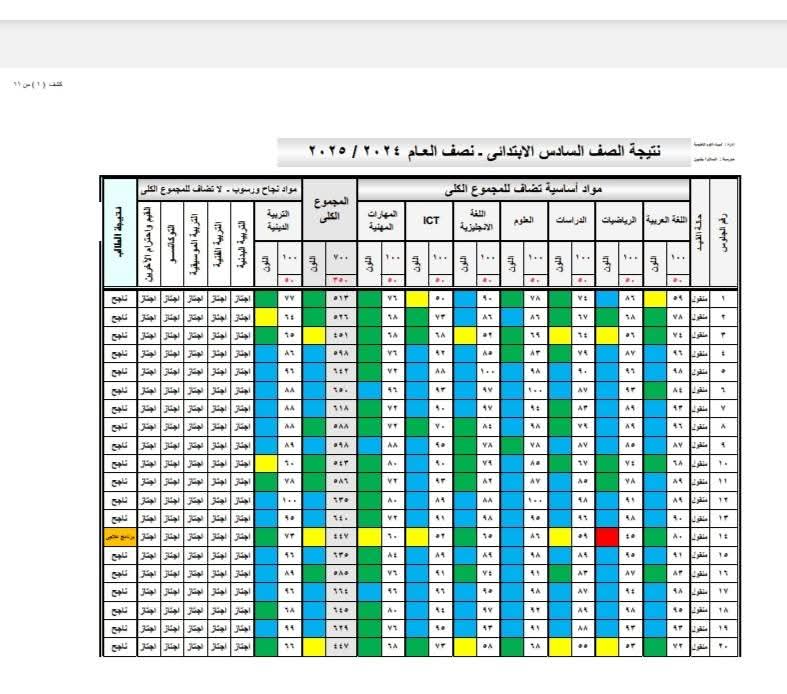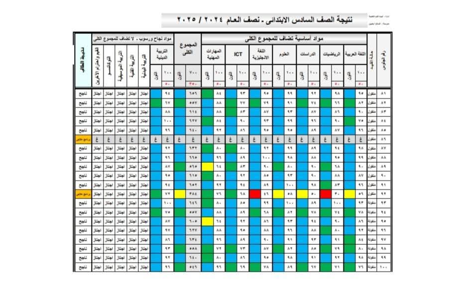 نتيجة الصف السادس الابتدائي 2025 الترم الأول