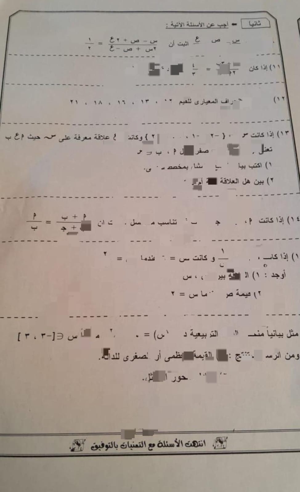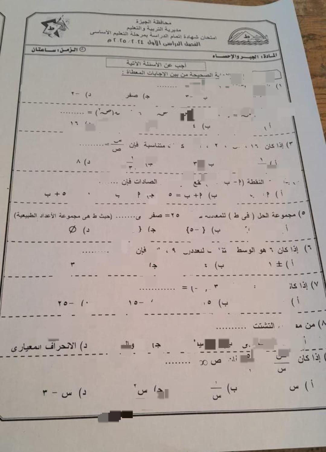 تداول أجزاء مزعومة من امتحان الجبر والإحصاء لطلاب الشهادة الإعدادية بالجيزة