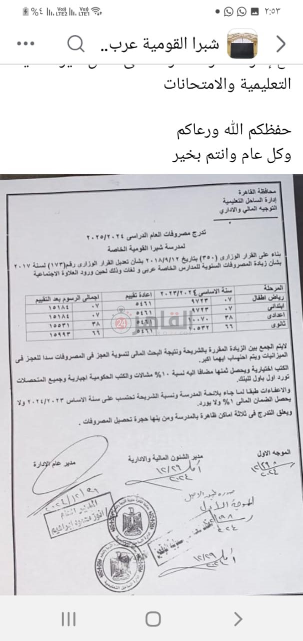 وصلت لـ 51 %.. أولياء أمور يستغيثون من زيادة المصروفات بمدرسة شبرا القومية للغات: دون سند قانوني