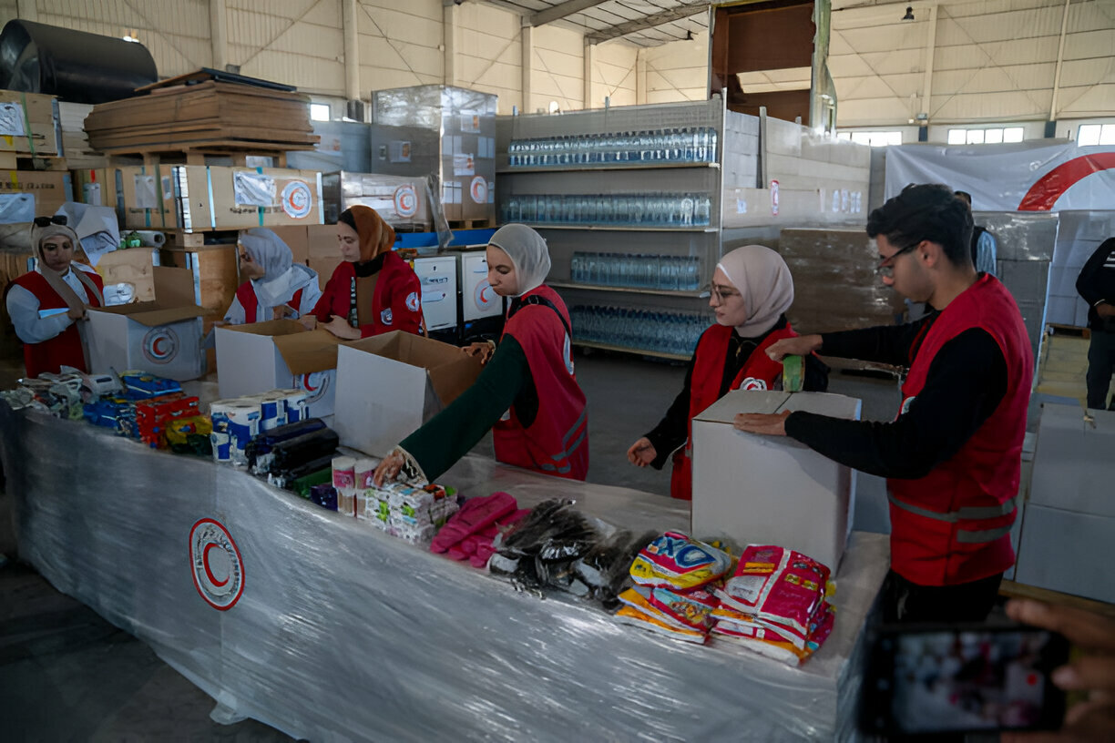 الهلال الأحمر: مئات المتطوعين يعملون يوميًا لضمان تجهيز المساعدات الإغاثية لدعم غزة