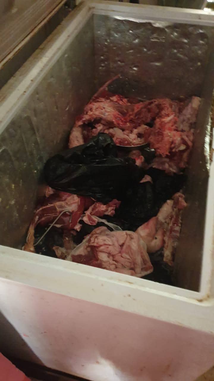 وضمت الضبطيات 2 طن 420 كجم مصنعات لحوم غير صالحة للإستهلاك الآدمى بكرداسة وامبابه والطالبية بالإضافة إلي ضبط 2.5 طن مقطعات ومصنعات لحوم وهياكل دواجن وكبده واسماك مستورده فاسدة وغير صالحة للإستهلاك الآدمى وضبط طن لحوم مفروم ومقطعات لحوم ودواجن غير صالحة للإستهلاك الآدمى بأحياء المنيرة الغربية والعجوزة والهرم.
