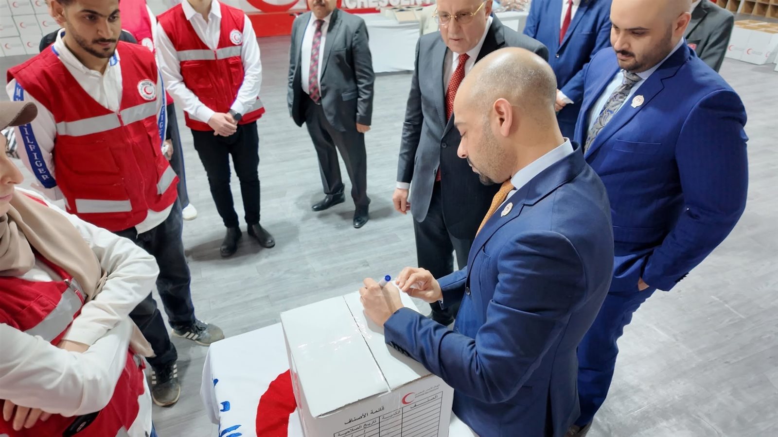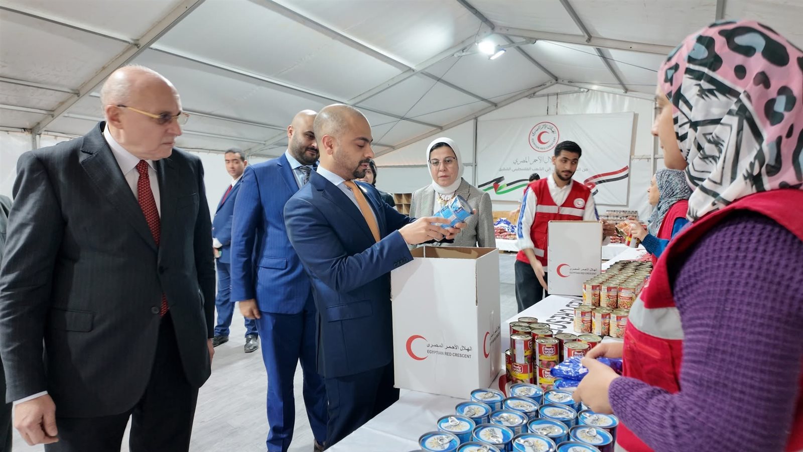 كما تم زيارة خيمة تعبئة المعونات الإنسانية، وشهدوا العمليات الدقيقة التي يقوم بها المتطوعون والعاملون لتجهيز المساعدات وضمان وصولها في أسرع وقت ممكن إلى مستحقيها.