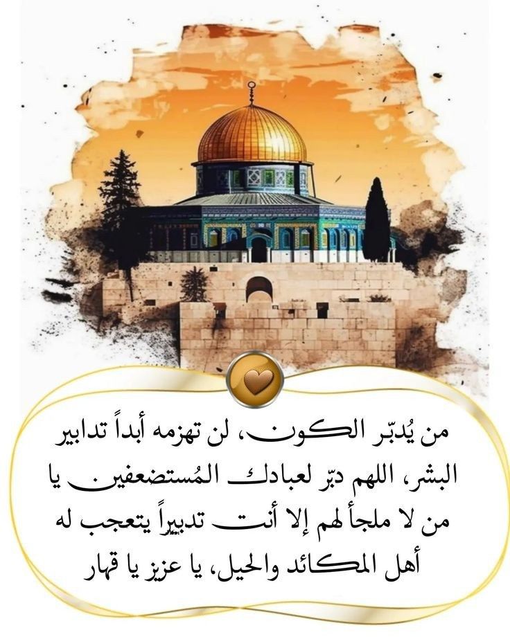 - يا من جبر بخاطر النبي صلى الله عليه وسلم، دبر أمره وأصلح حاله وأمره كله، وأمري كله، اللهم فك كربته ووحدته وفرج همه.