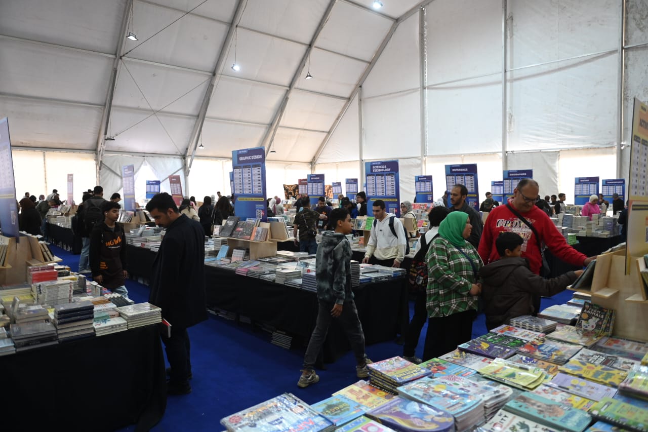 كما شهدت أروقة المعرض وأجنحته الرئيسية إقبالًا لافتًا من الزوار، الذين يتوافدون للبحث عن الفكر والمعرفة من خلال شراء مجموعة متنوعة من الكتب التي تلبي احتياجات مختلف الأعمار والتوجهات الفكرية والثقافية.