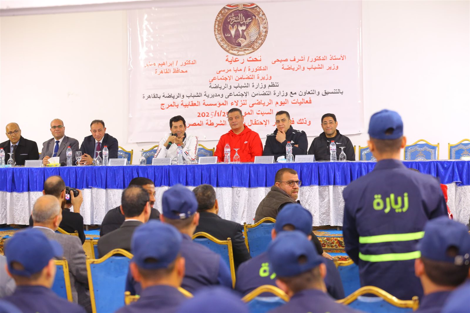 نظمت وزارة التضامن الاجتماعي بالتعاون مع وزارة الشباب والرياضة فعاليات اليوم الرياضي لأبناء المؤسسة العقابية بالمرج التابعة لوزارة التضامن الاجتماعي بمنطقة المرج، في إطار الاحتفال بأعياد الشرطة المصرية، والذي شهد فاعلياته الدكتور أشرف صبحي وزير الشباب والرياضة بحضور الدكتور إبراهيم صابر، محافظ القاهرة، وأيمن عبد الموجود الوكيل الدائم لوزارة التضامن الاجتماعي، ووائل عبد العزيز رئيس الإدارة المركزية للرعاية الاجتماعية، وحسين إسماعيل مدير عام الإدارة العامة للدفاع الاجتماعي بوزارة التضامن الاجتماعي، والدكتور عمرو الحداد وكيل وزارة الشباب والرياضة ورئيس الإدارة المركزية للتنمية الرياضية، وعدد واسع من قيادات العمل بوزارتي التضامن الاجتماعي والشباب والرياضة.