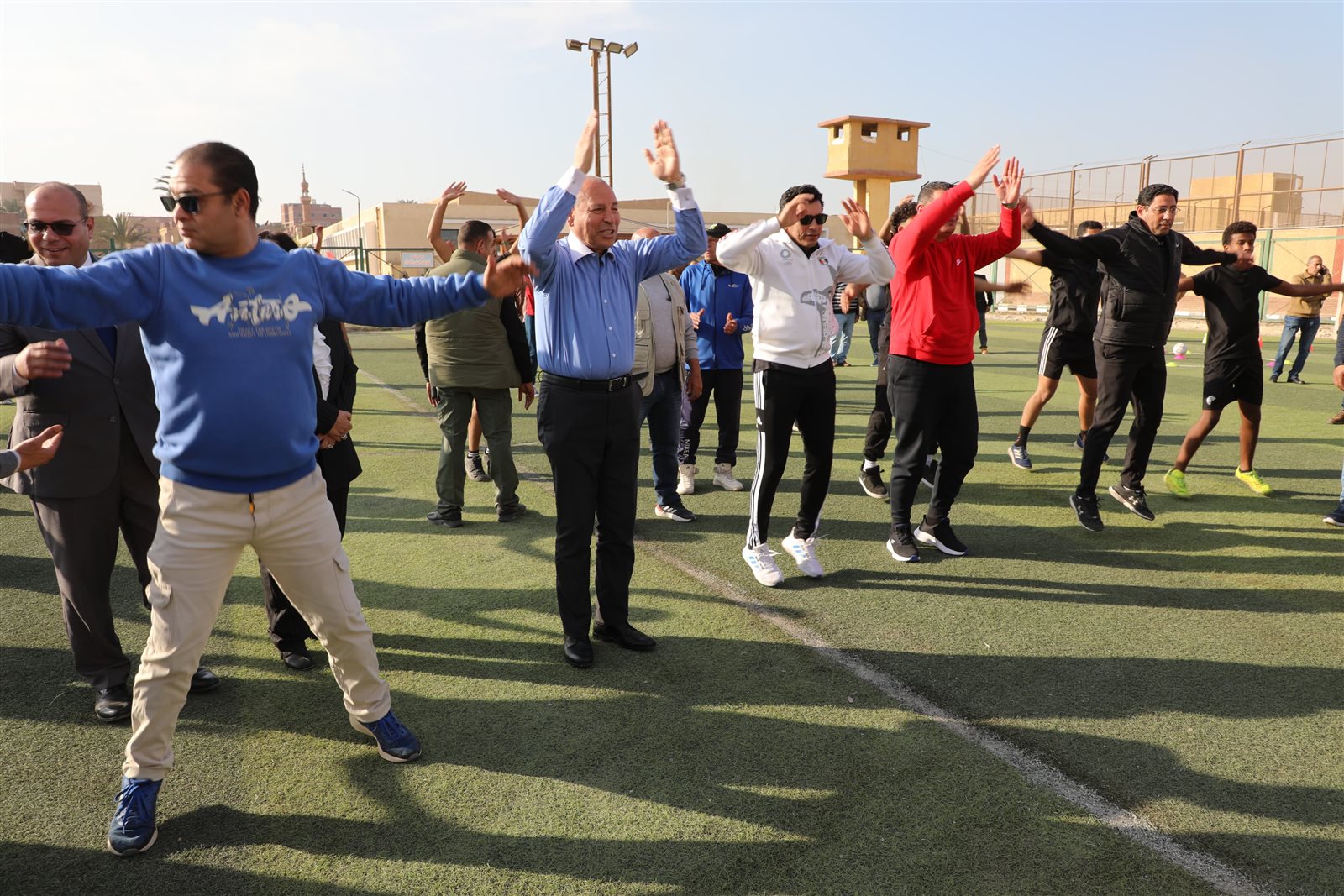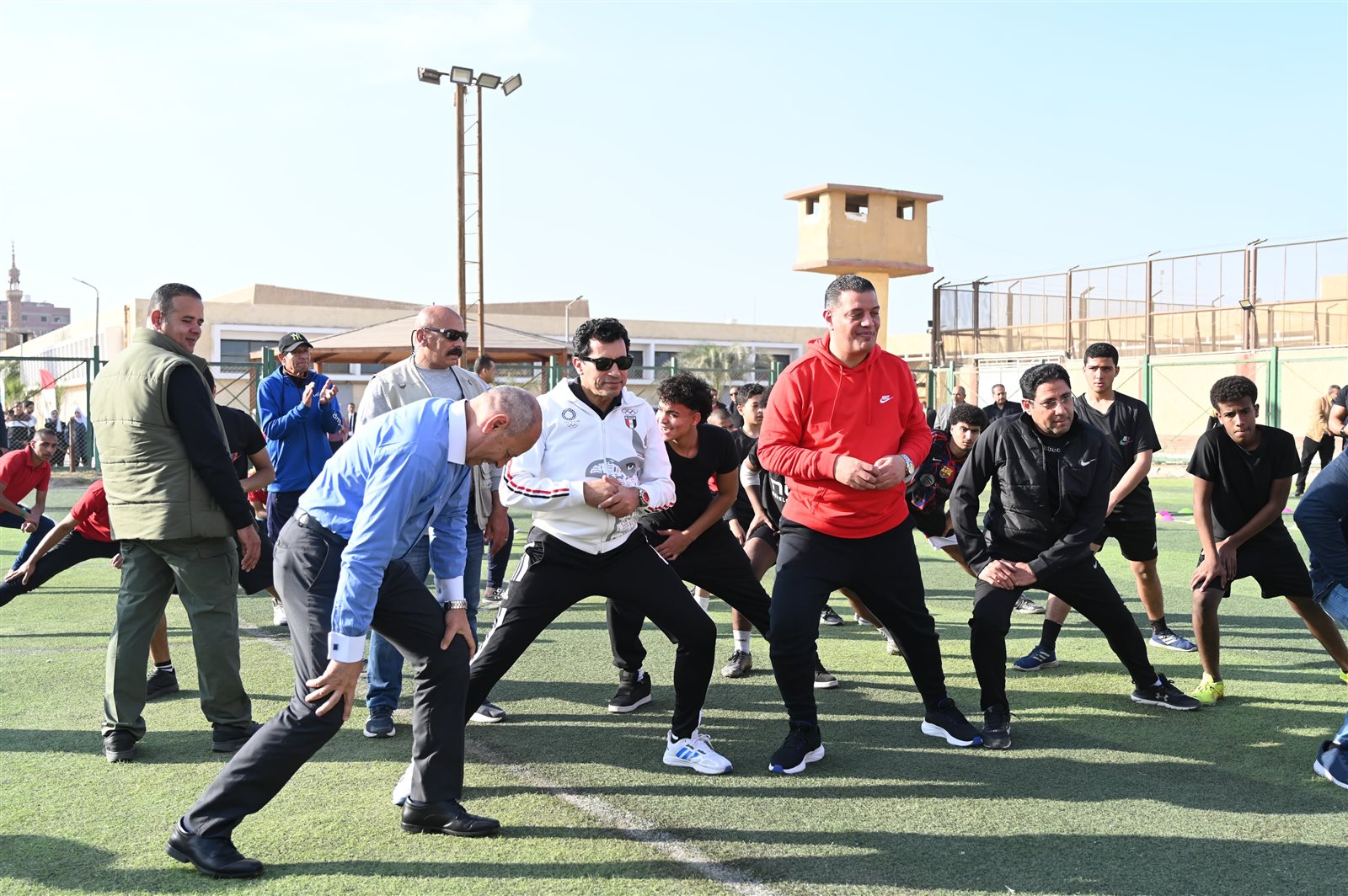 محافظ القاهرة ووزير الشباب يؤديان التمارين مع سجناء المؤسسة العقابية بالمرج