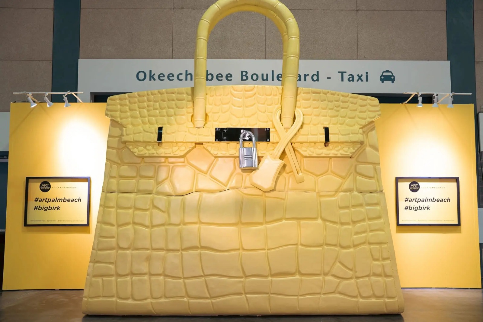 وظهر عبر منصات التواصل الاجتماعي، حاملا ضخما باللون الأصفر الكناري، يحمل اسم بيج بيرك، والذي صممه الفنان GEO من مدينة نيويورك، في ولاية صن شاين كجزء من معرض آرت بالم بيتش، وهو معرض للفن المعاصر.