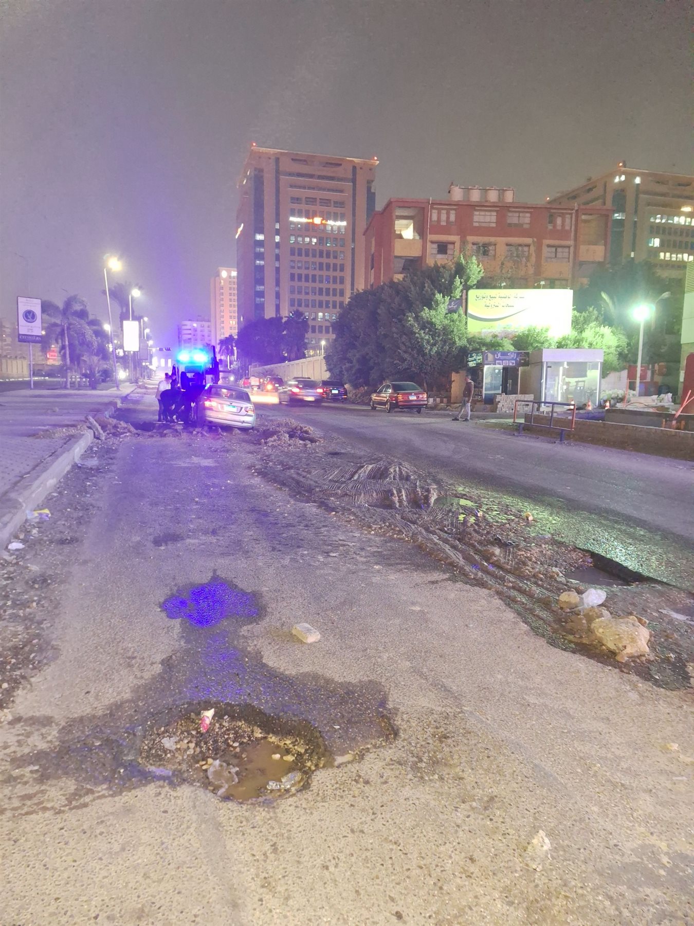 شهد شارع عمر بن الخطاب بمحيط مول سيتي ستارز في مدينة نصر، بـمحافظة القاهرة، سقوط سيارة ملاكي BMW في أعمال حفر بطول الطريق الرئيسي.