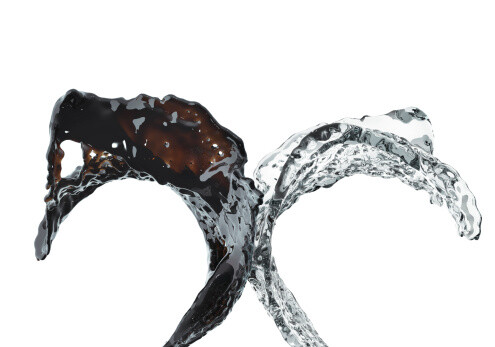 - ضع مزيج الماء والزيت في كوب زجاجي.