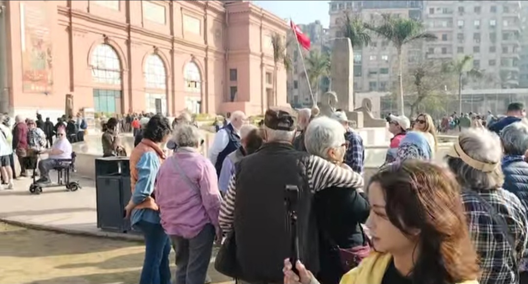 ونشرت إدارة المتحف المصري بالتحرير، عبر صفحتها الرسمية على فيسبوك صورا من ازدحام السائحين على بوابة الدخول الرئيسية للمتحف كالتالي: