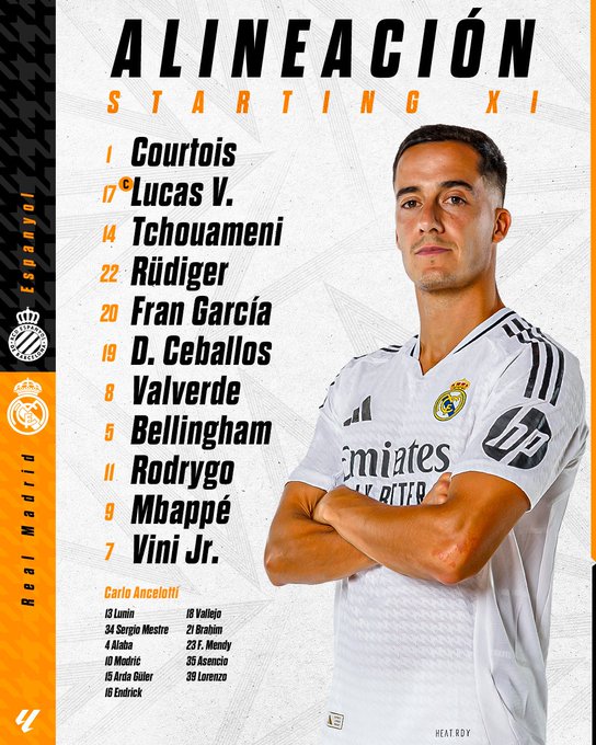 - في خط الدفاع: لوكاس فاسكيز، تشواميني، روديجر، فيران جارسيا.