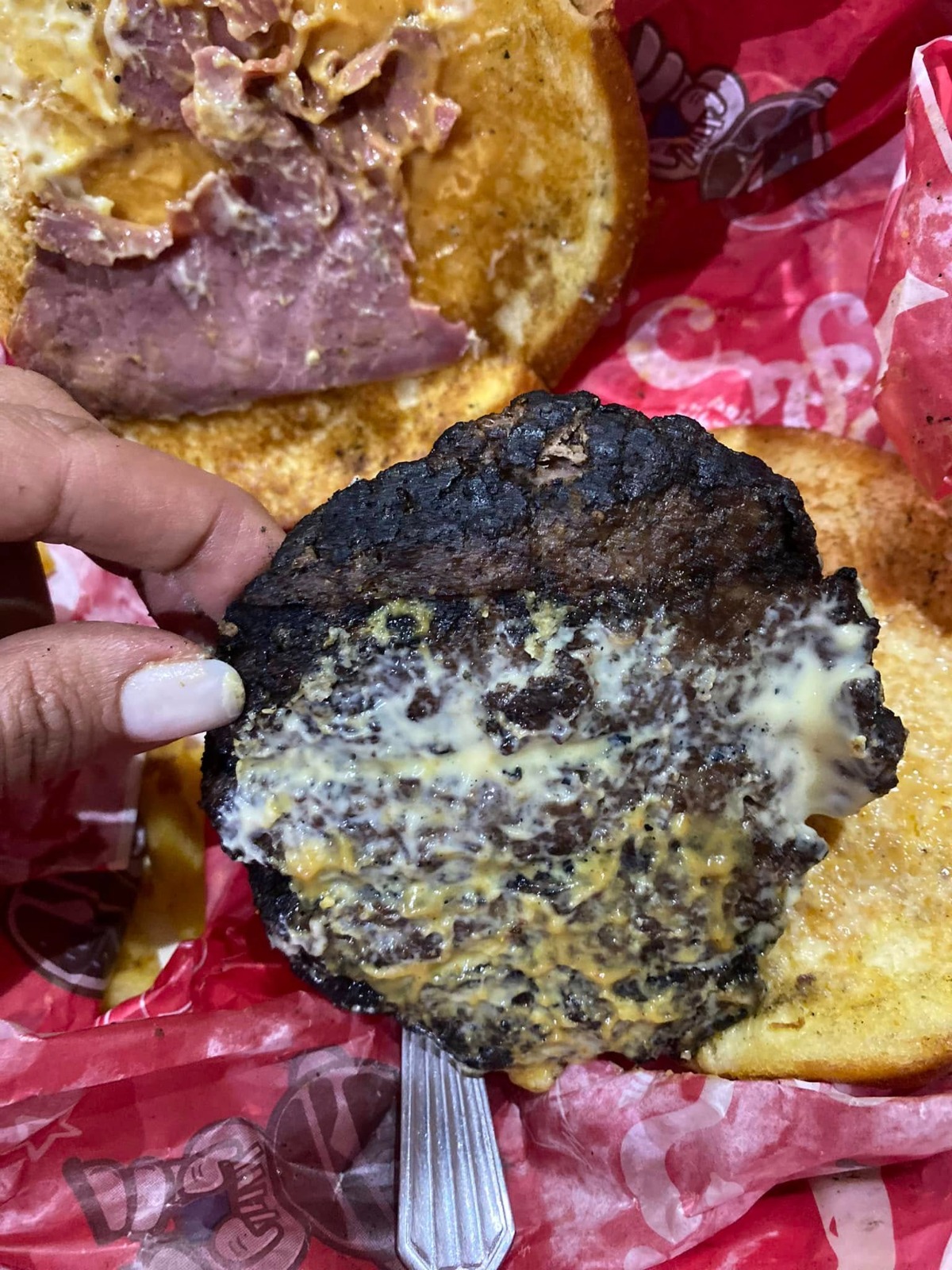 لكنها لم تكن محظوظة في هذه المرة أيضًا، إذ وجدت البرجر محروق، الخس دبل، والعيش غير طازج، والطعام كله كان سيئًا.. معلقة: باكل لحمة محروقة للمرة الثانية.