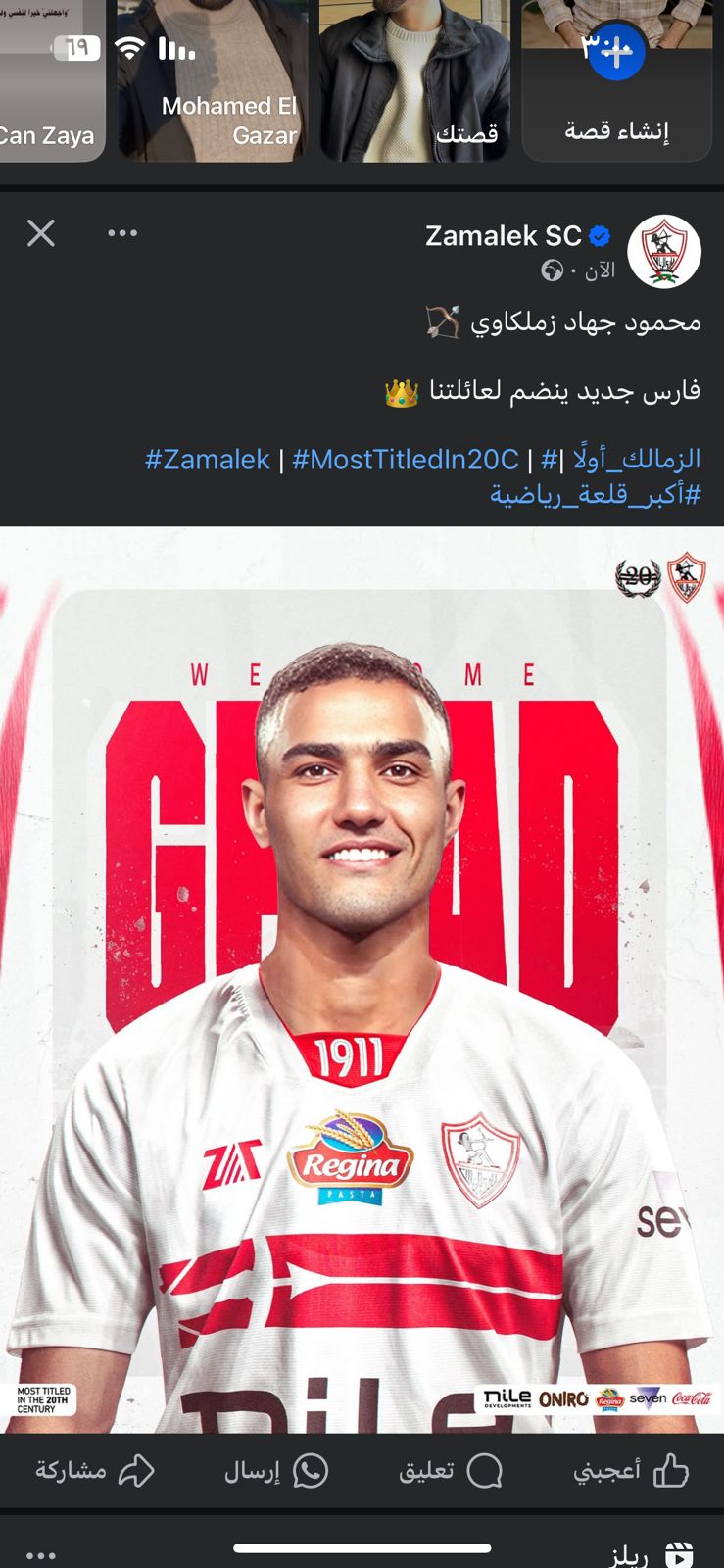 ونشرت الصفحة الرسمية لنادي الزمالك على موقع فيس بوك: محمود جهاد زملكاوي، فارس جديد ينضم لعائلتنا.