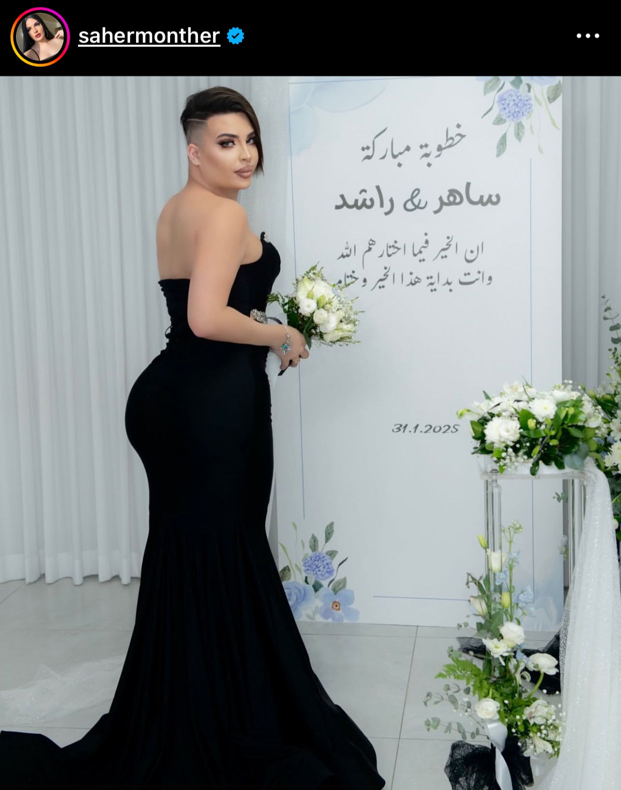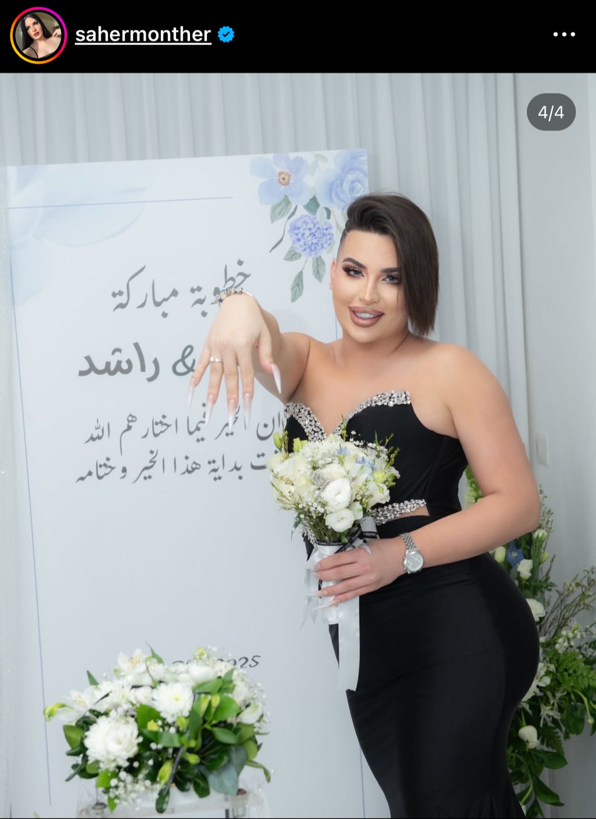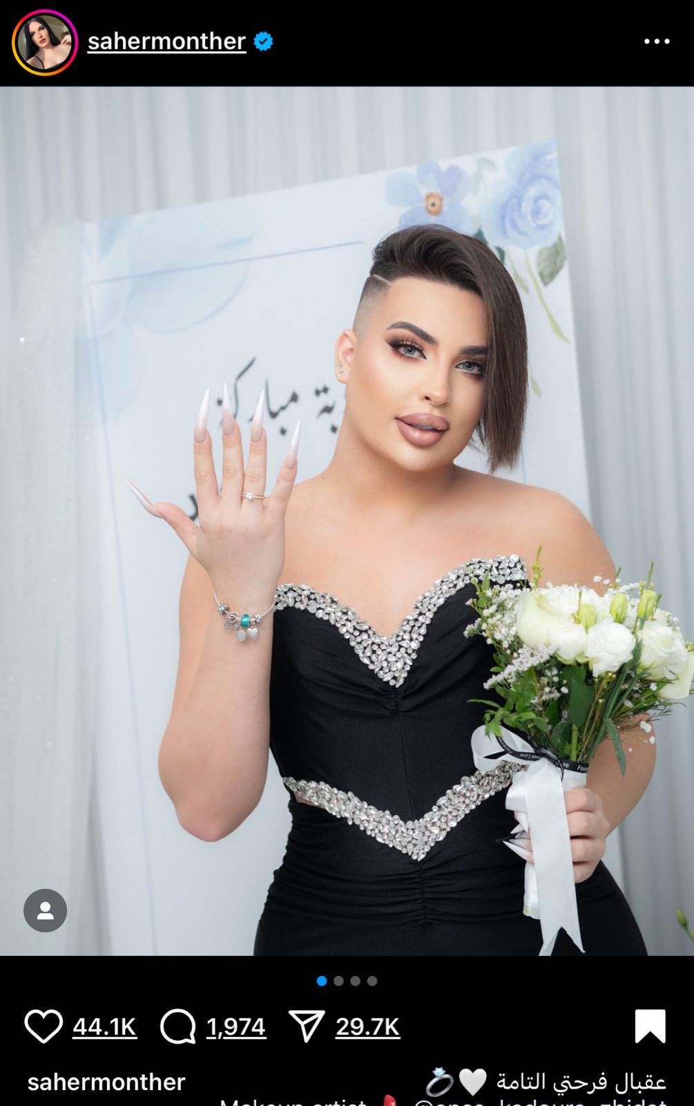 ووفقًا لما نشره البلوجر السوري ساهر منذر عبر حسابه الشخصي على منصة تداول الصور والفيديوهات إنستجرام، مجموعة من الصور ومقاطع الفيديو التي توثق لحظات احتفاله بخطوبته، حيث ظهر يرتدي فستانا نسائيا أسود اللون وخاتم الزواج في يده، وسط أجواء احتفالية مثيرة للجدل، وسرعان ما انتشرت الصور على نطاق واسع، ما دفع عديد المستخدمين إلى شنّ هجوم لاذع عليه، متهمينه بالسعي وراء إثارة الجدل وجذب الانتباه، خاصًة أنه من أكثر الأشخاص المثيرين للجدل على ساحات السوشيال ميديا بسبب تحوله الجنسي وظهوره في شكل أنثوي عبر مقاطع الفيديوهات المُصورة له.