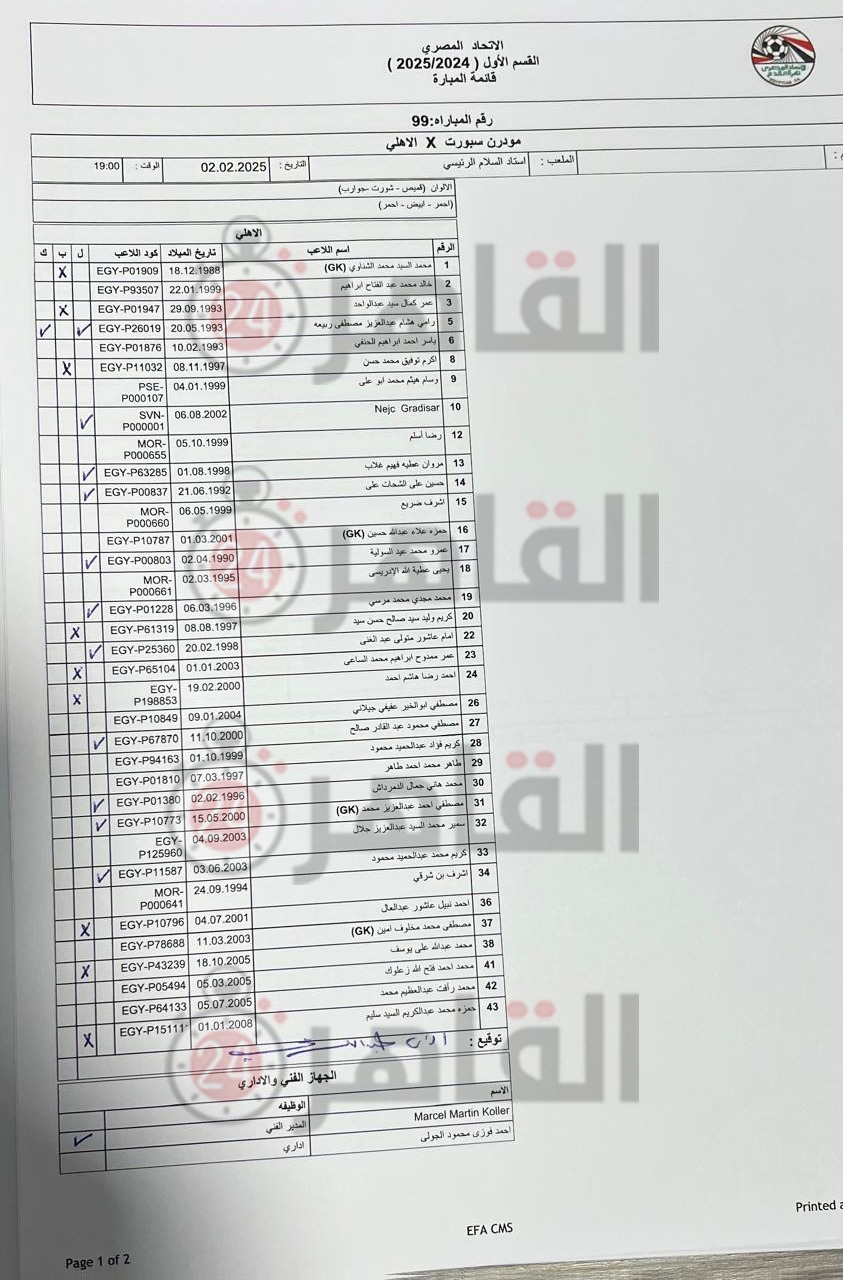 وانفرد القاهرة 24 بنشر مستند يثبت صحة موقف مشاركة عمر الساعي في مباراة الأهلي ومودرن سبورت، ووجود اللاعب على مقاعد البدلاء.