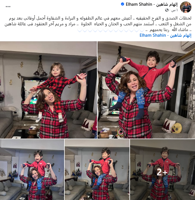 ونشرت إلهام شاهين الصور، عبر حسابها الشخصي بموقع التواصل الاجتماعي فيس بوك، وعلقت عليها: لحظات الصدق والفرح الحقيقية.. أعيش معهم في عالم الطفولة والبراءة والشقاوة أجمل أوقاتي بعد يوم من الشغل والتعب.. أستمد منهم الحب والحنان والحياه الحلوة.. مراد ومريم آخر العنقود في عائلة شاهين.. ما شاء الله ربنا يحميهم.
