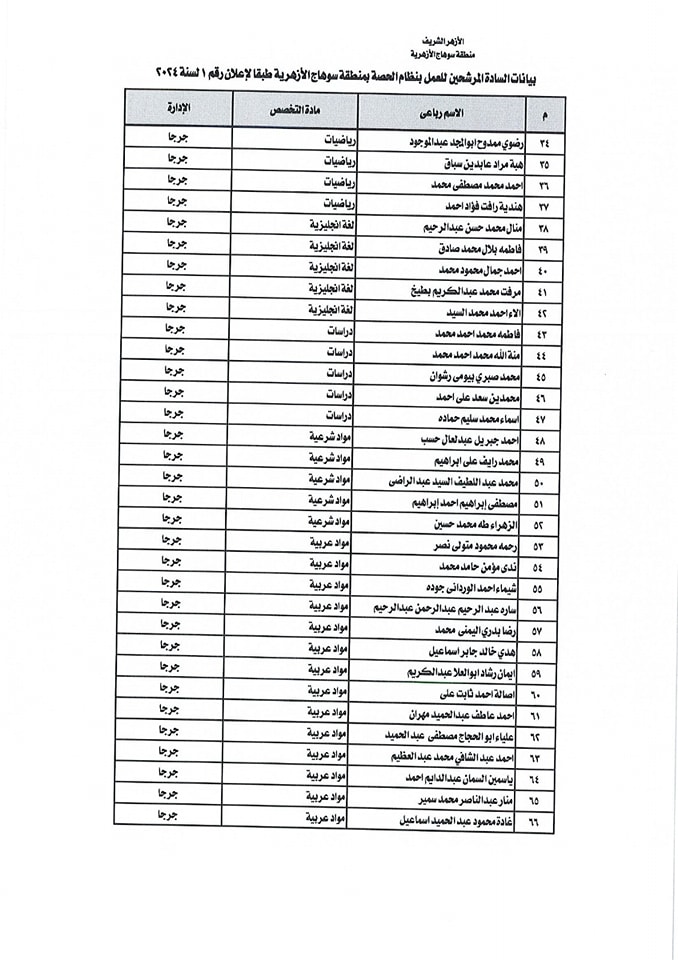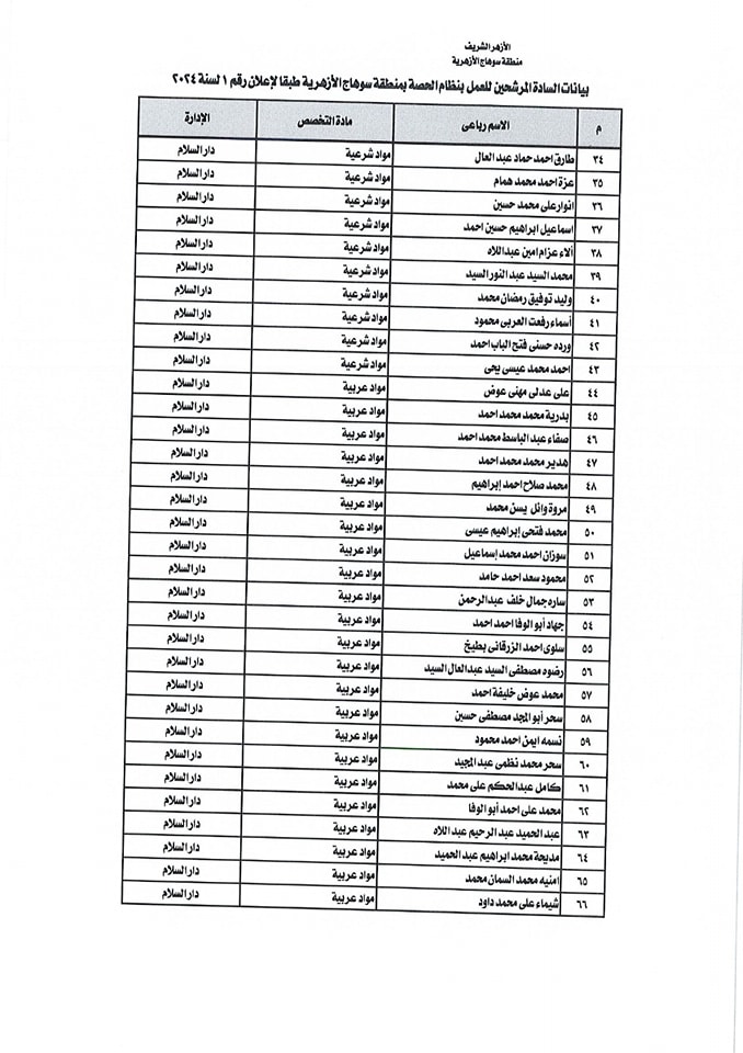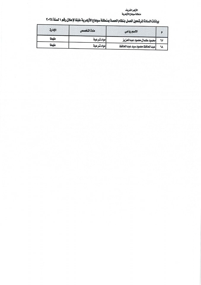 أسماء المقبولين بالحصة في منطقة سوهاج الازهرية