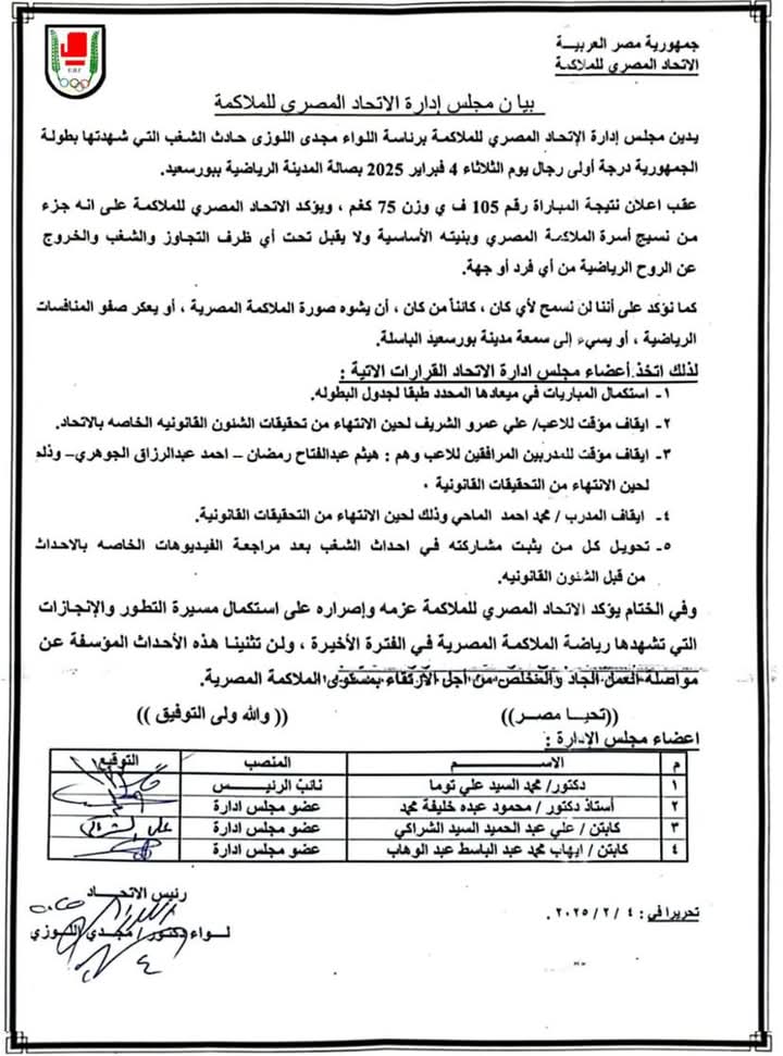 تعرف على قرارات اتحاد الملاكمة عقب أحداث بورسعيد